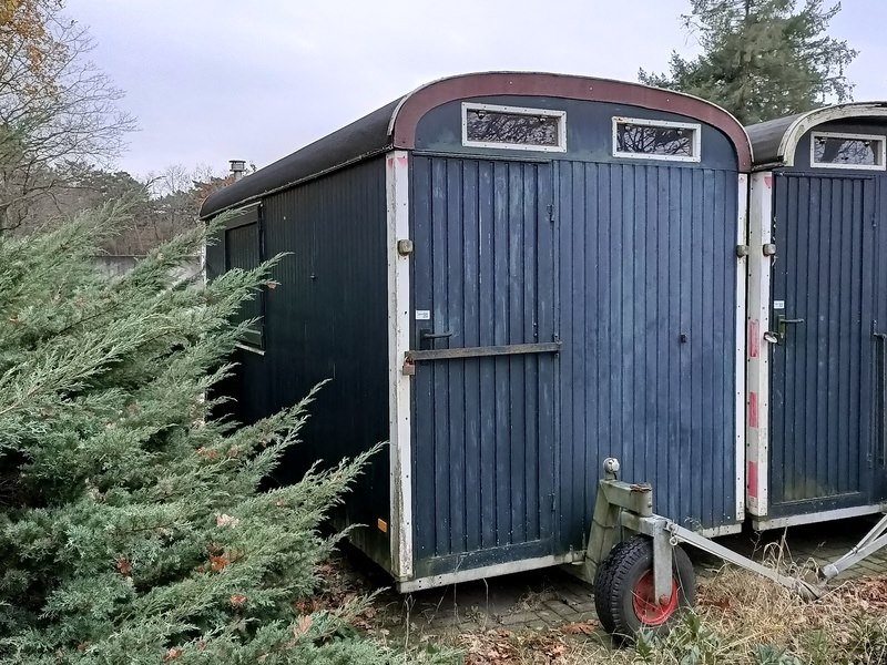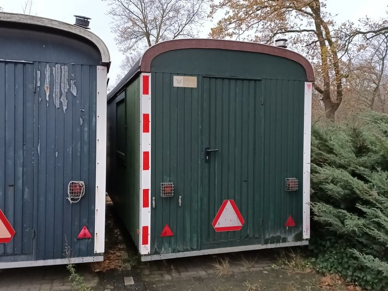 Merk: De Meeuw Product: Langzaamverkeer schaftkeet Afmeting: doorrijhoogte ca. 265 cm, lengte opbouw ca. 490 cm, breedte ca. 215 cm Conditie: Gebruikt
