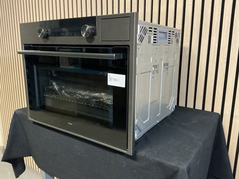 Merk: ATAG Product: Inbouw combi-Stoomoven Kleur: black steel Afmeting: 60x45x55cm Conditie: nieuw