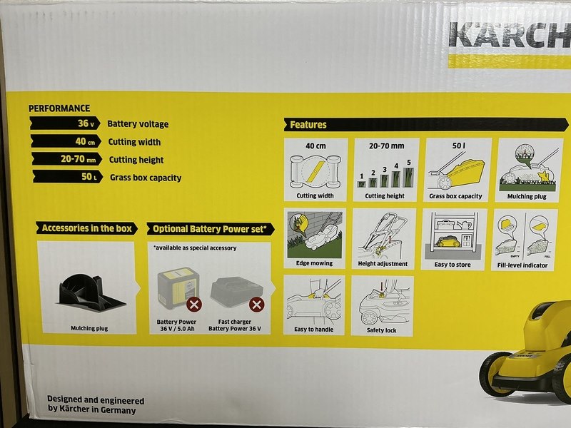 Merk: Kärcher Product: Grasmaaier Kleur: geel/zwart Conditie: nieuw Specificaties: Nieuw in de verpakking, accu niet inbegrepen