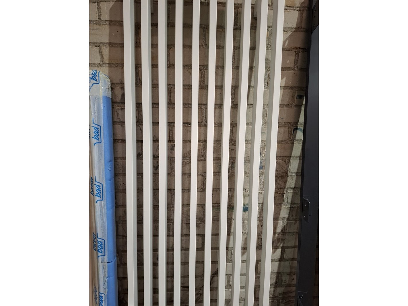 Merk: Vasco Product: Designradiator Kleur: mat wit Afmeting: 180x47cm Specificaties: vierkante buizen, vast handdoekrek, incl thermostaatkraan