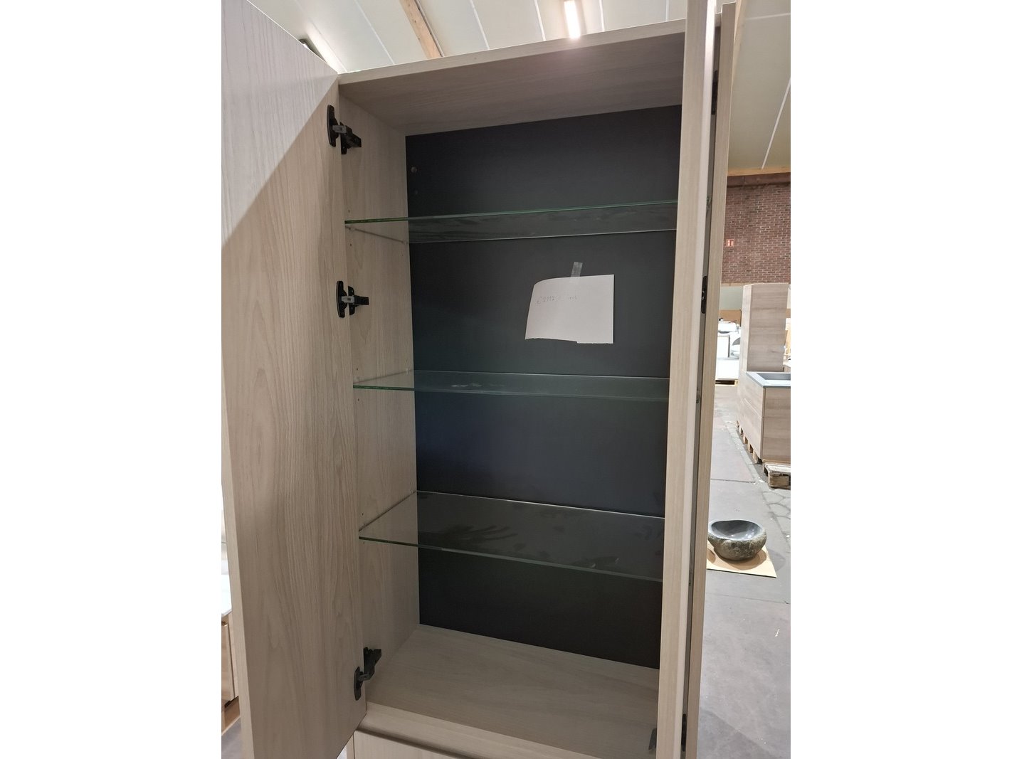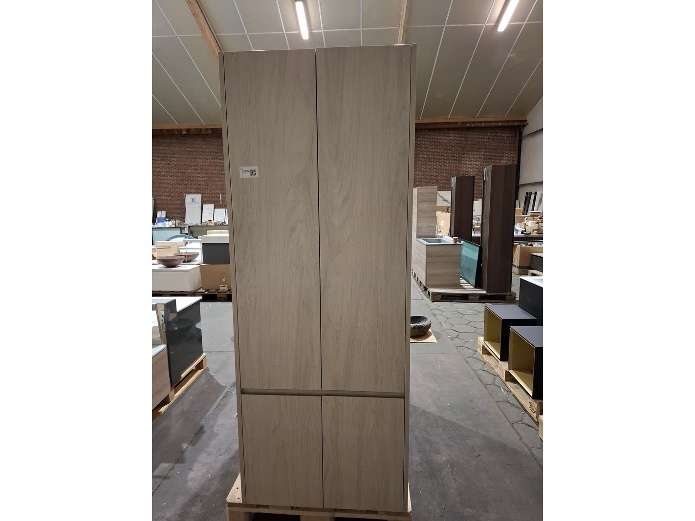Merk: Edoné Product: Hoge kast Kleur: licht eiken Afmeting: 180x70x35cm Specificaties: 4 deurtjes met softclose, glazen leggers