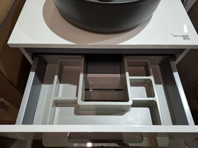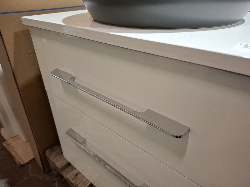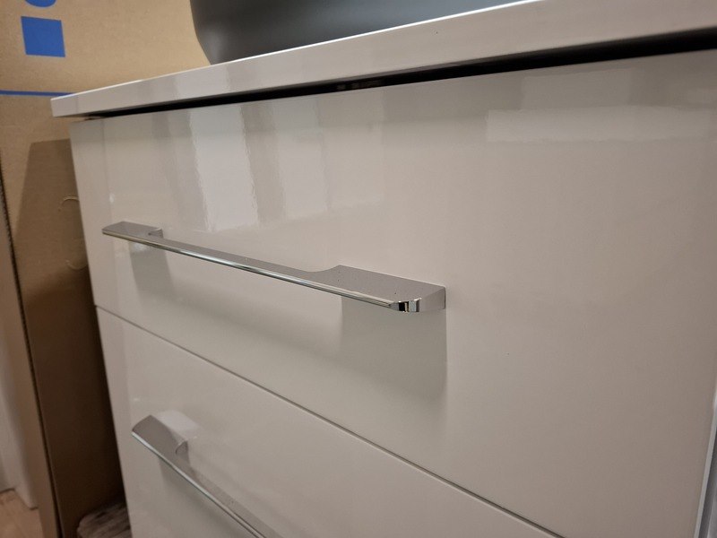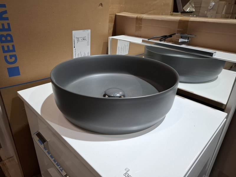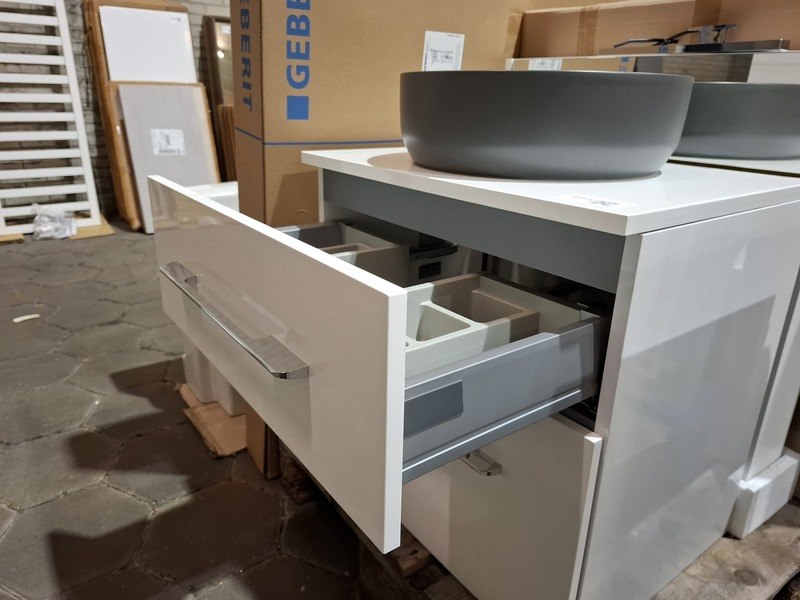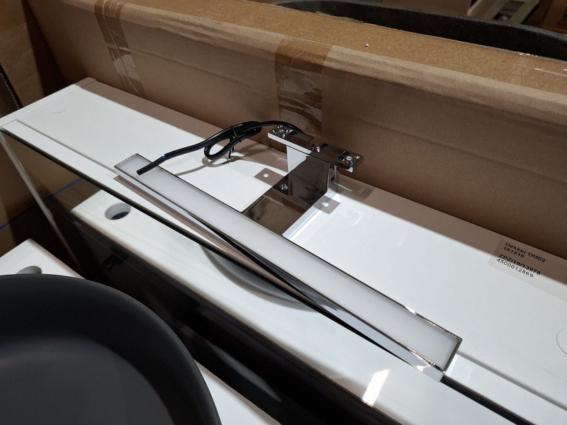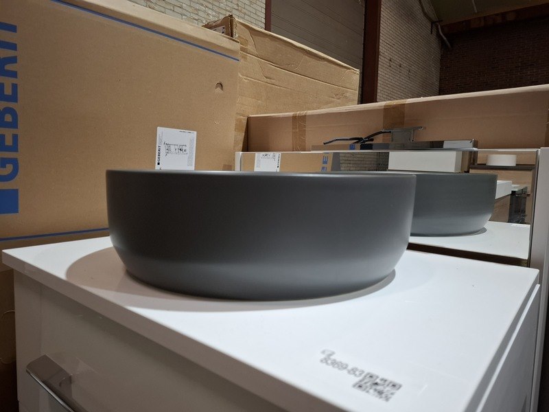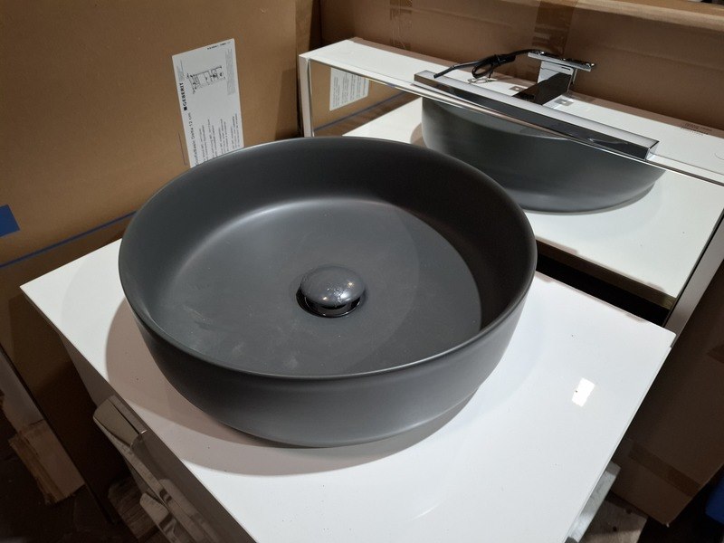 Product: Badmeubel Kleur: glans wit Afmeting: 60x42cm Specificaties: 2 lades, met softclose, met lade-verdeler, chromen grepen, topblad, glans wit, keramische waskom, Ø 40cm, mat zwart, waste, mat zwart, spiegelkast, 60cm, 1 deurtje, met softclose, spiegelverlichting