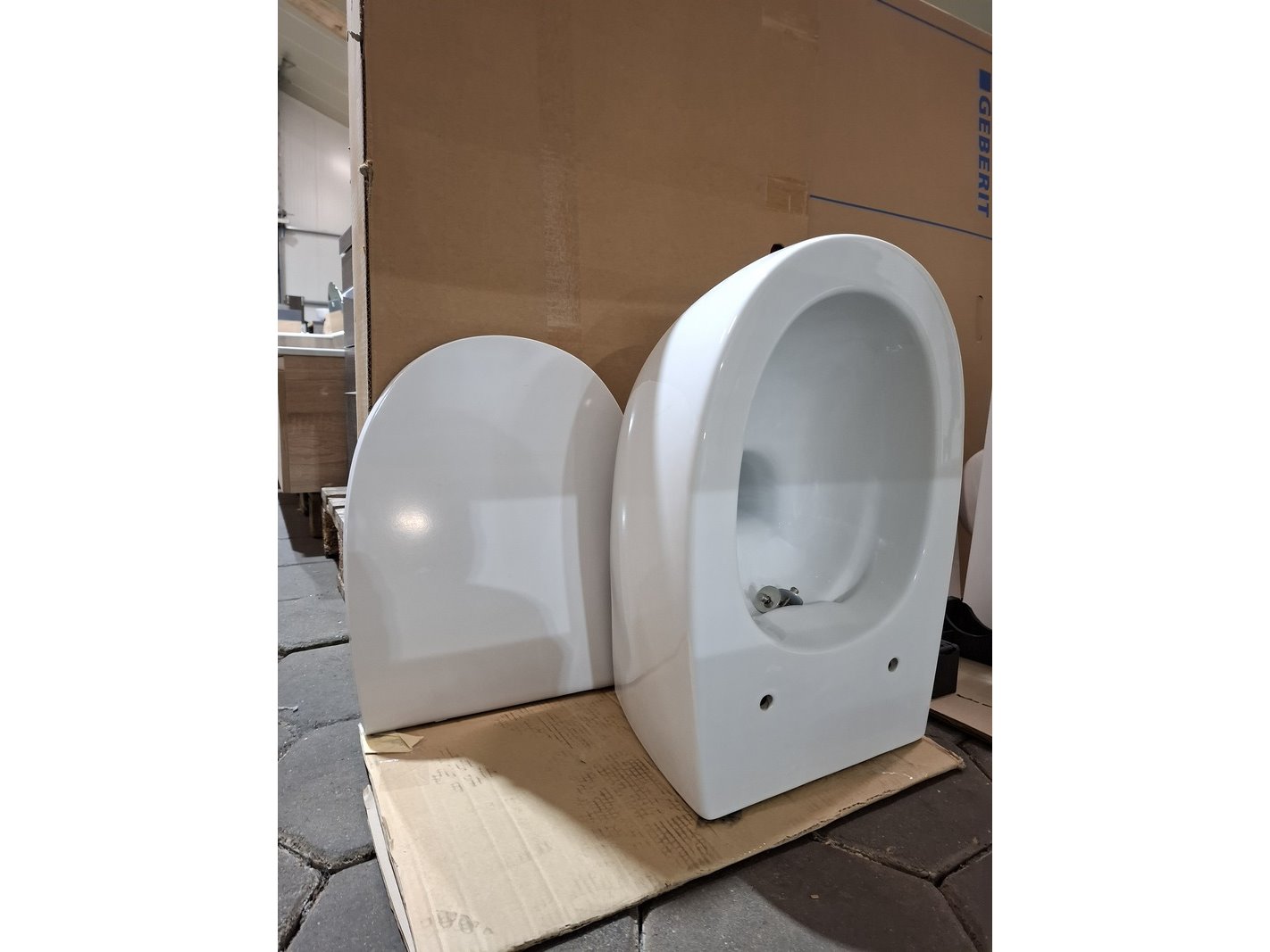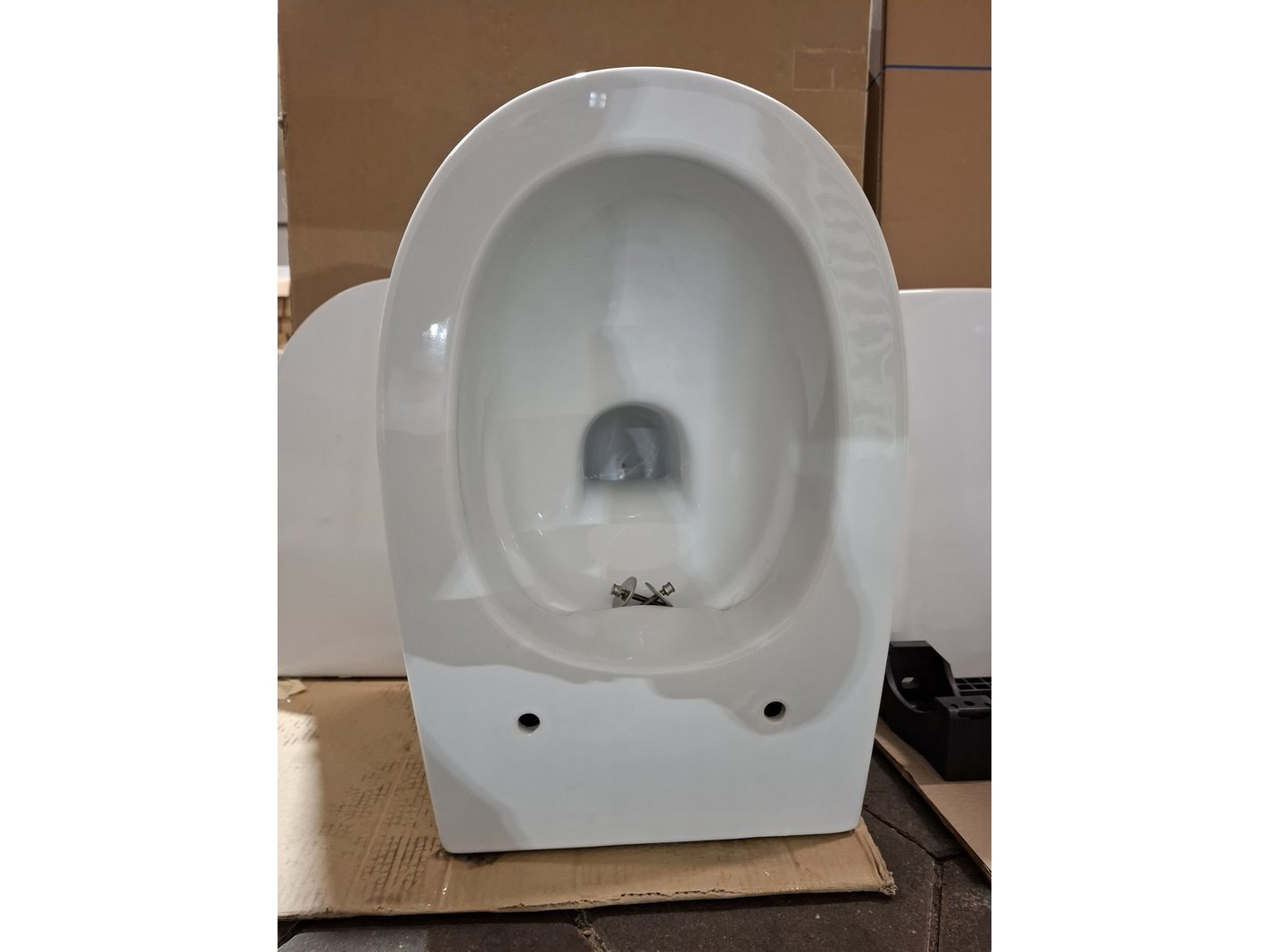 Product: Wandcloset-set Kleur: glans wit Specificaties: rimfree, incl. zitting/deksel met softclose en quick release, inbouwreservoir, TECE, art.nr. 9300065