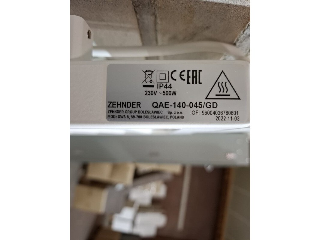 Merk: Zehnder Product: Elektrische designradiator Kleur: mat wit Afmeting: 143.5x50cm Specificaties: met afstandsbediening, Zehndernr. QAE-140-045/GD