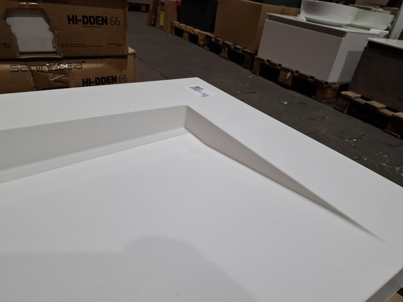 Merk: Sienna 1200 Product: Wastafel Kleur: mat wit Materiaal: polybeton Afmeting: 120x50cm Specificaties: met verdekte afvoer