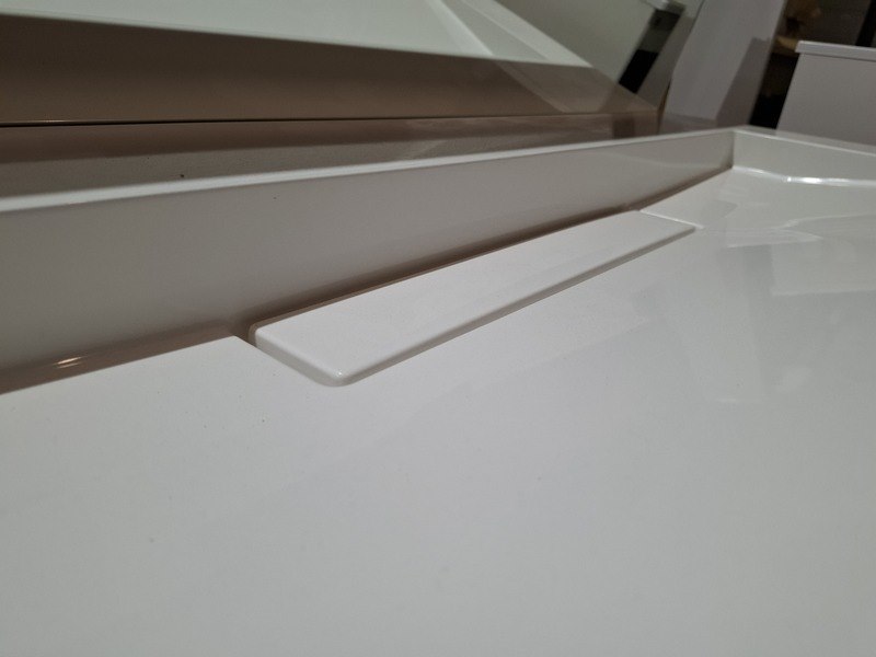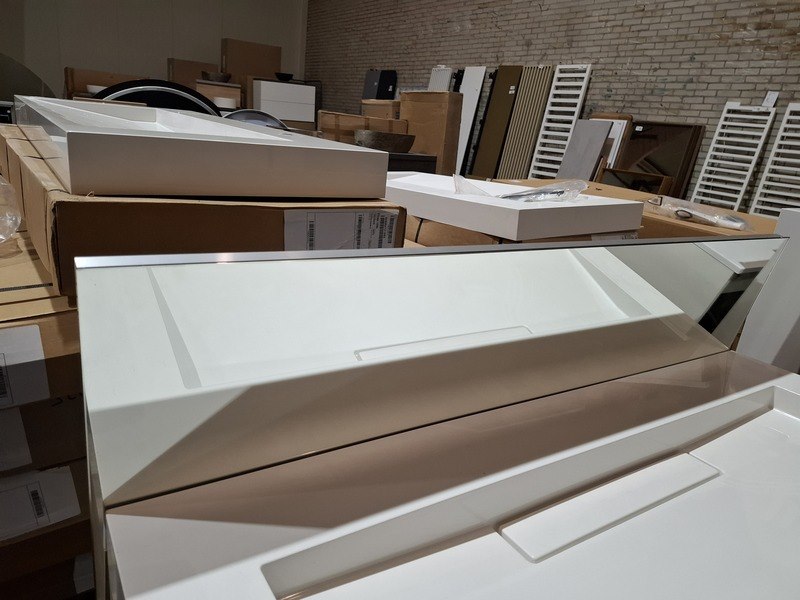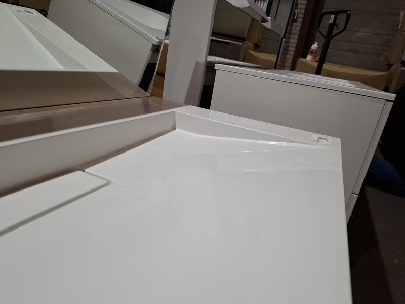 Product: Badmeubel Kleur: beach oak Afmeting: 120x50cm Specificaties: 2 lades met softclose, met Blum geleidesysteem, polybeton wastafel, glanswit, verdekte afvoer, spiegel, 120x70cm, in aluminium frame