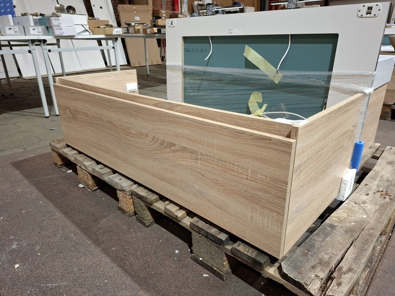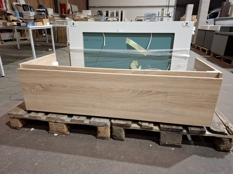 Product: Badmeubel Kleur: beach oak Afmeting: 130x50cm Specificaties: 1 lade met softclose, Blum geleidesysteem, nieuw in verpakking.