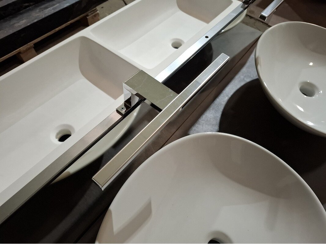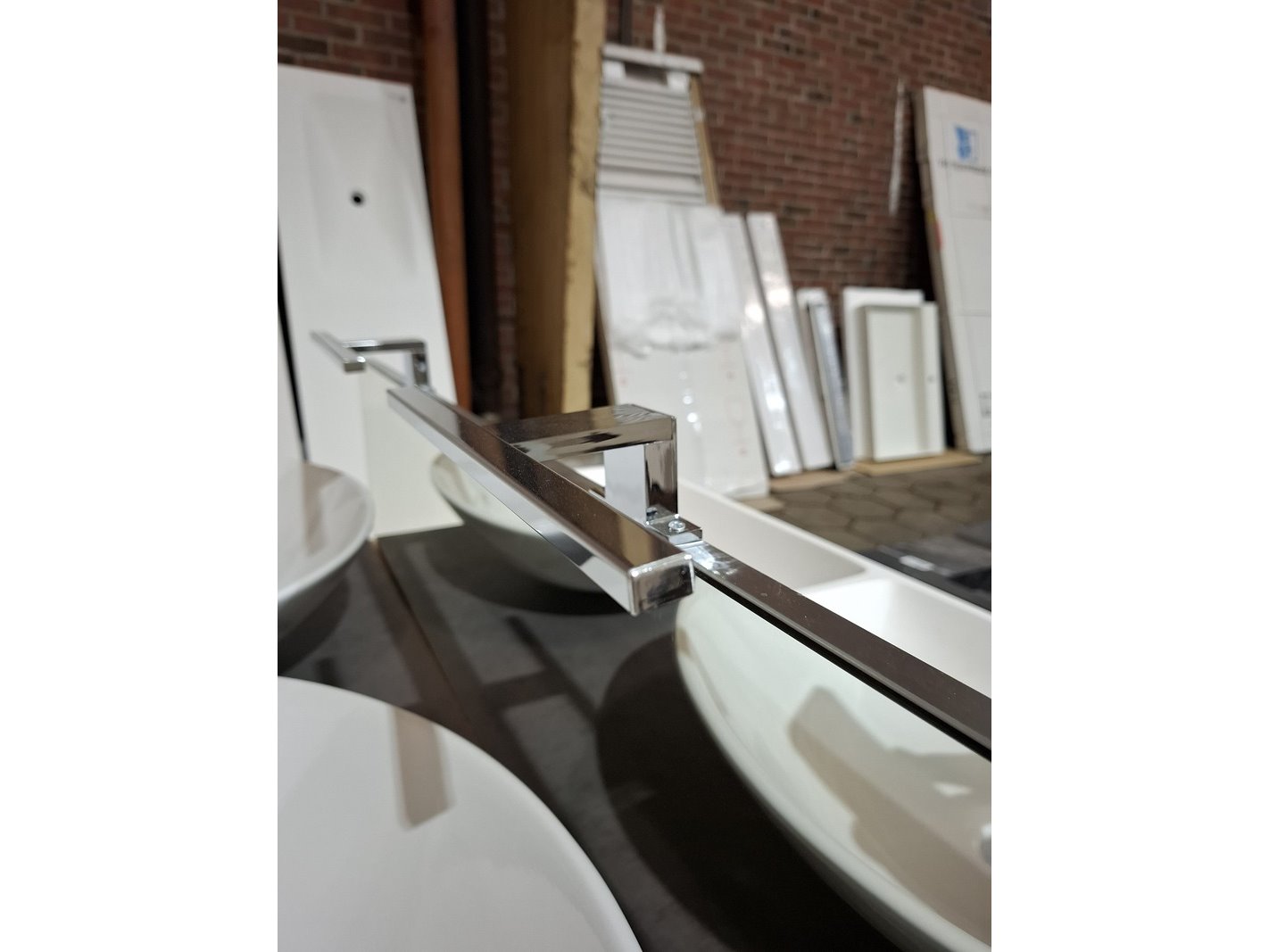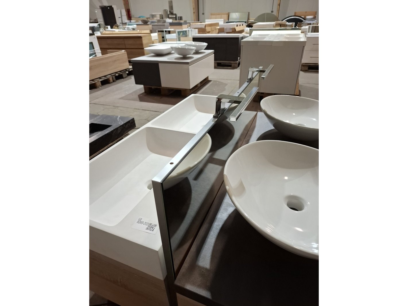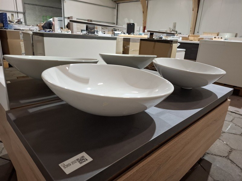 Product: Badmeubel Kleur: beach oak Afmeting: 120x46cm Specificaties: 1 lade met softclose, Blum geleidesysteem, topblad, antraciet, 2x waskom, keramisch, glans wit incl. spiegel 120x70 met 2 x verlichting