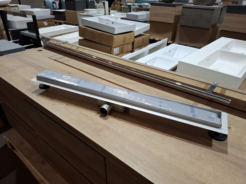 Product: Douchegoot Materiaal: RVS Afmeting: 120cm Specificaties: met tegelrooster