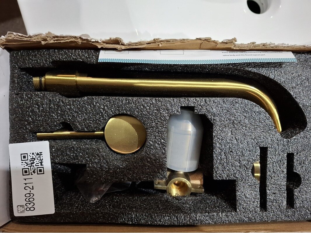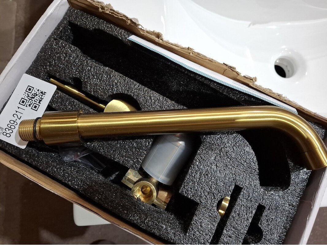 Product: Wastafelkraan Kleur: mat goud Specificaties: uitloop 25cm, alle in-en opbouwdelen