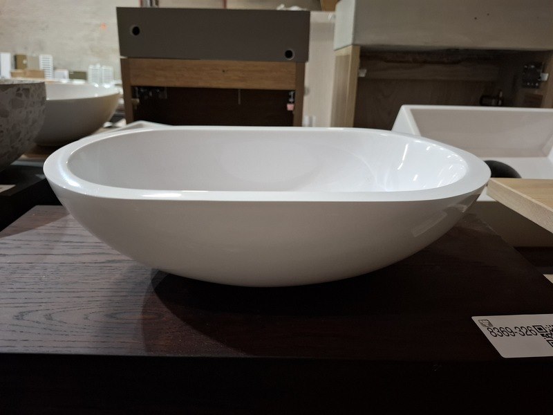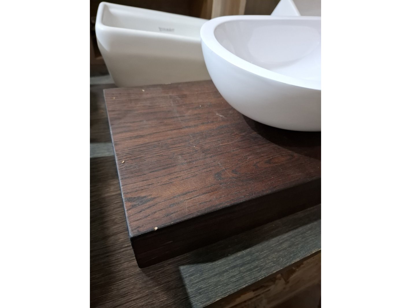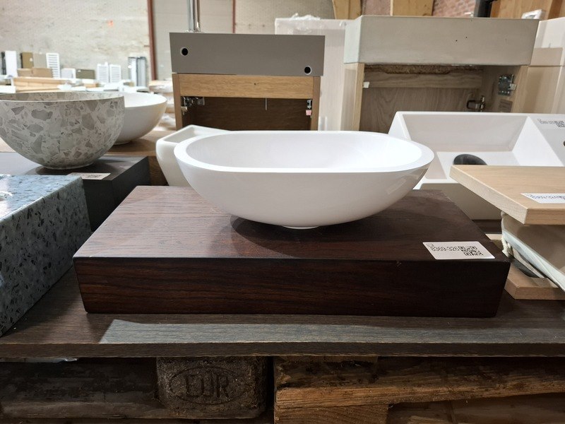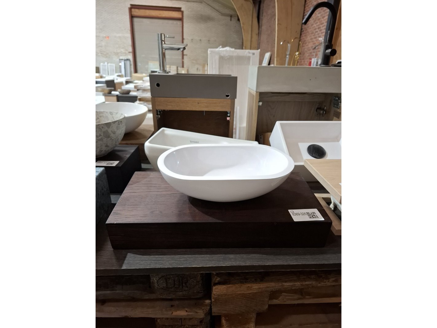 Product: Fontein op schap Kleur: palissander Materiaal: polybeton Afmeting: 50x22cm Specificaties: fontein ovaal, glans wit, 33x19cm