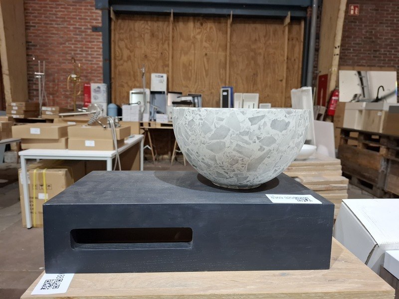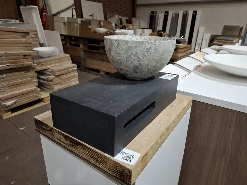 Product: Fonteinkom op schap Kleur: mat zwart Materiaal: stone Afmeting: Ø23cmx(h)13cm