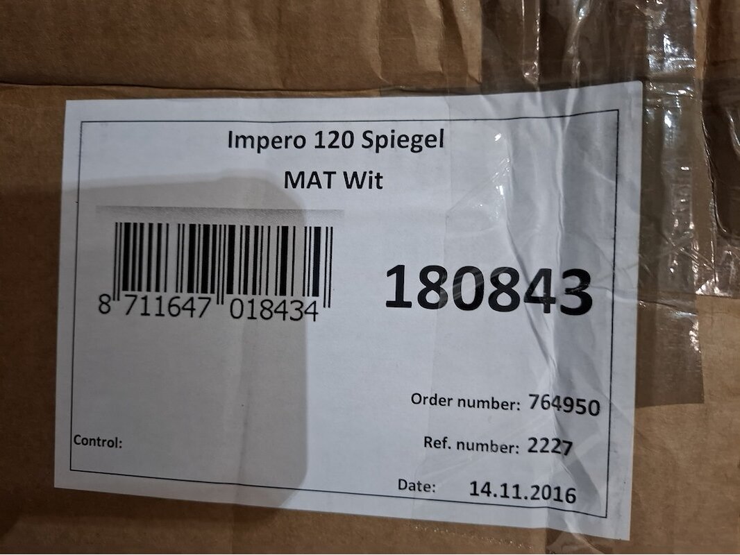 Merk: IMPERO 120 Product: Badkamerspiegel Kleur: mat wit Afmeting: 120x70