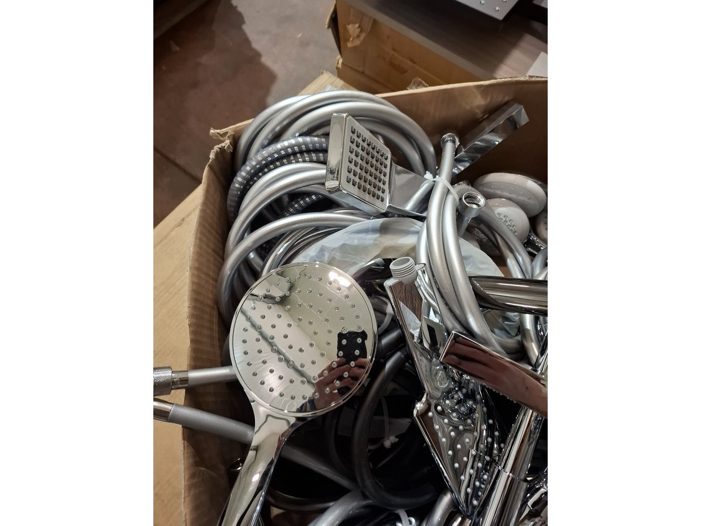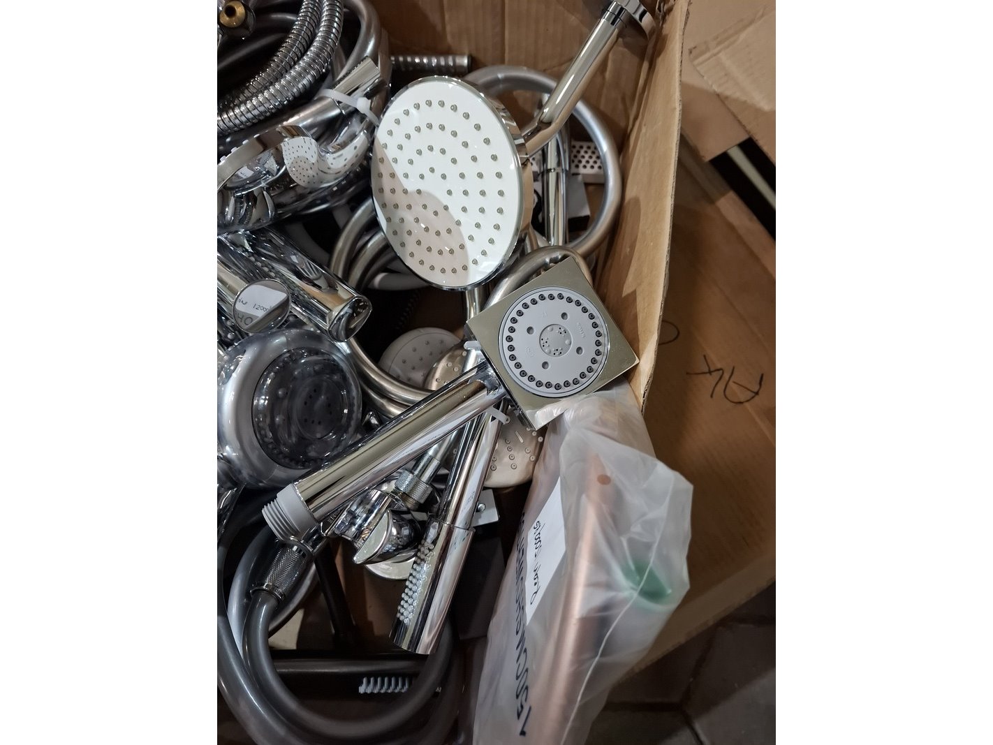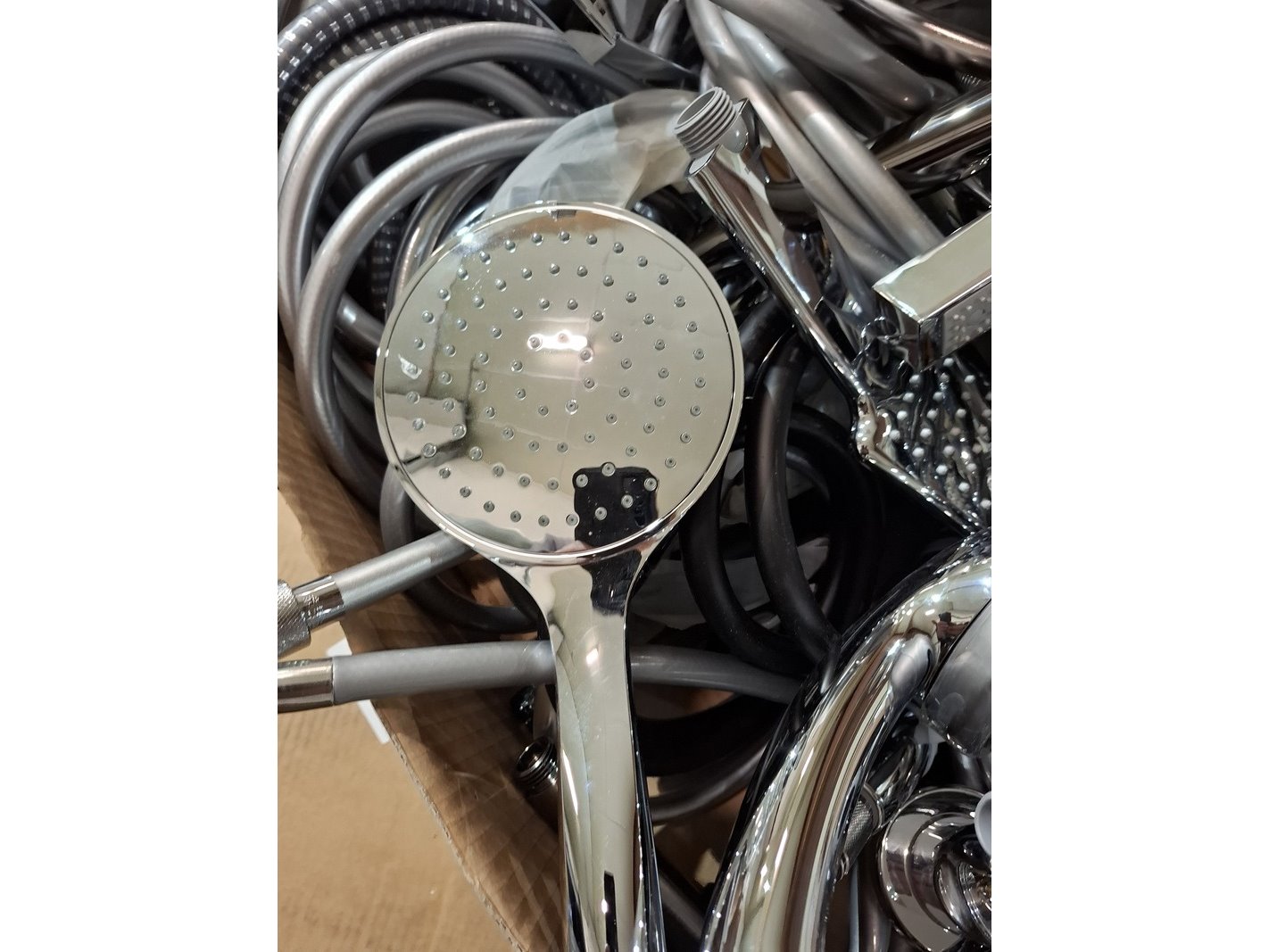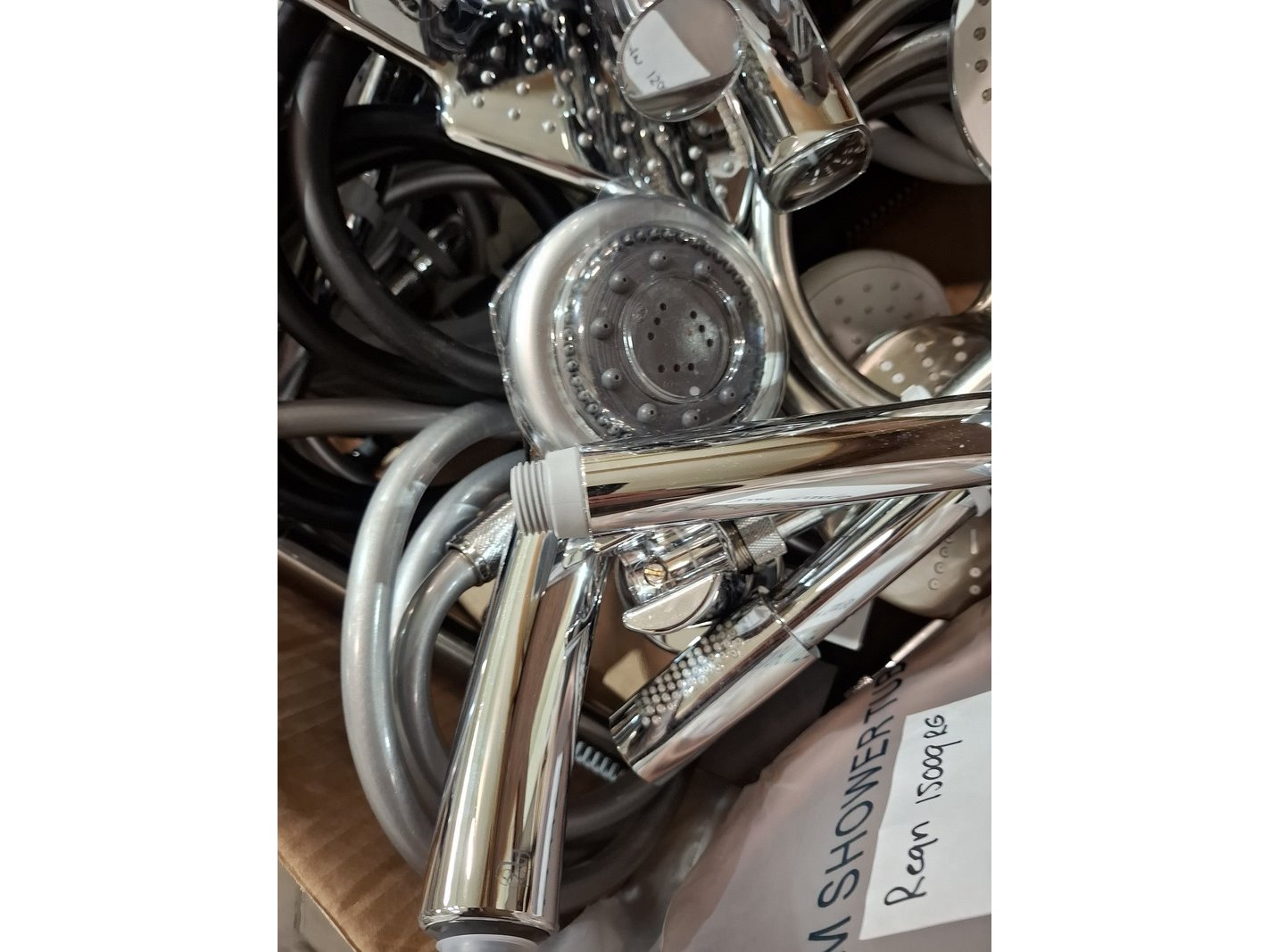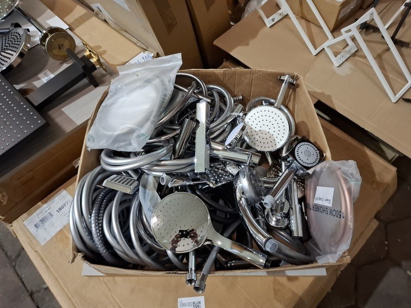 Product: Partij handdouches met slang Afmeting: diverse Specificaties: kavel met handdouches, diverse merken en modellen.