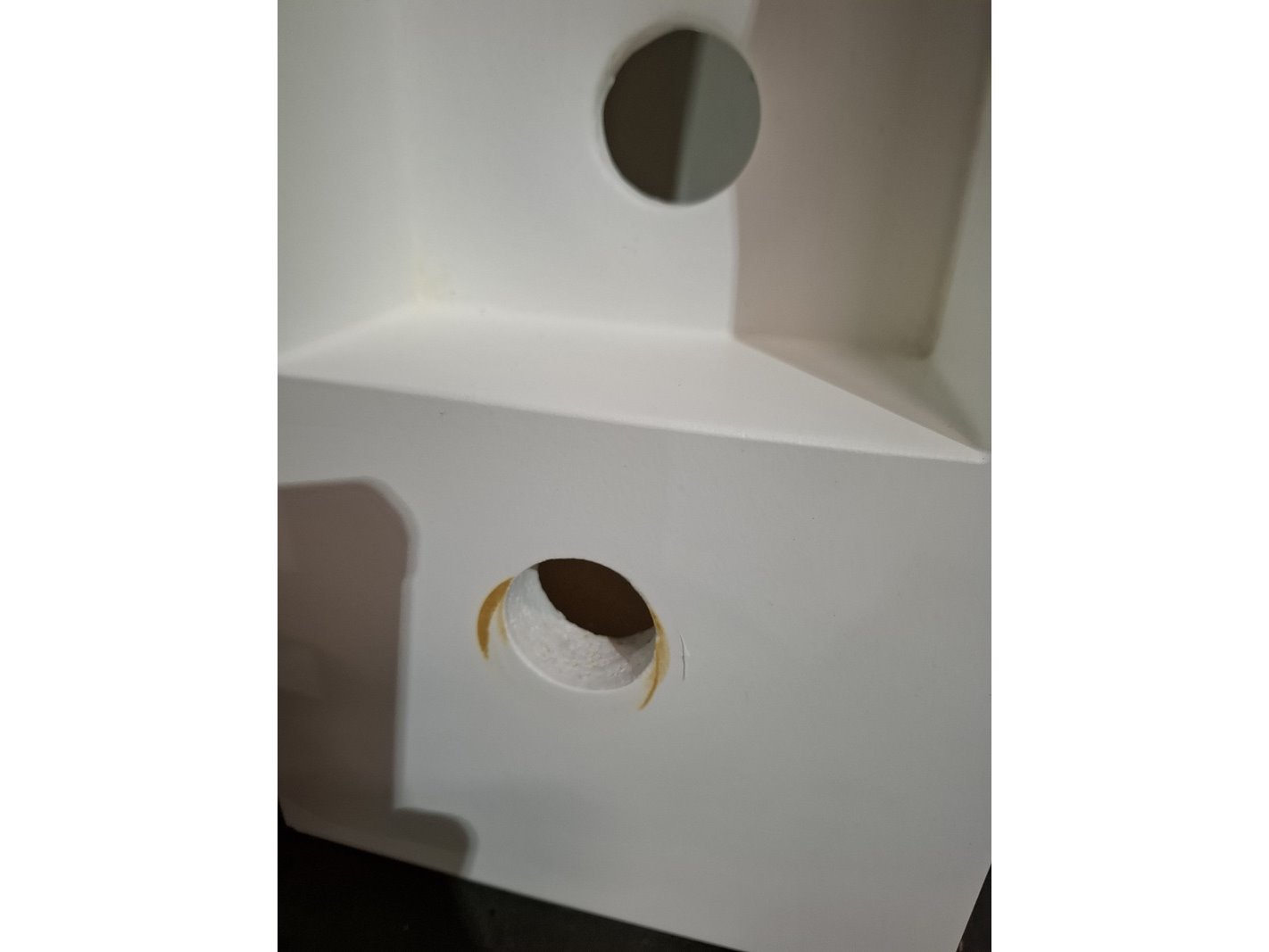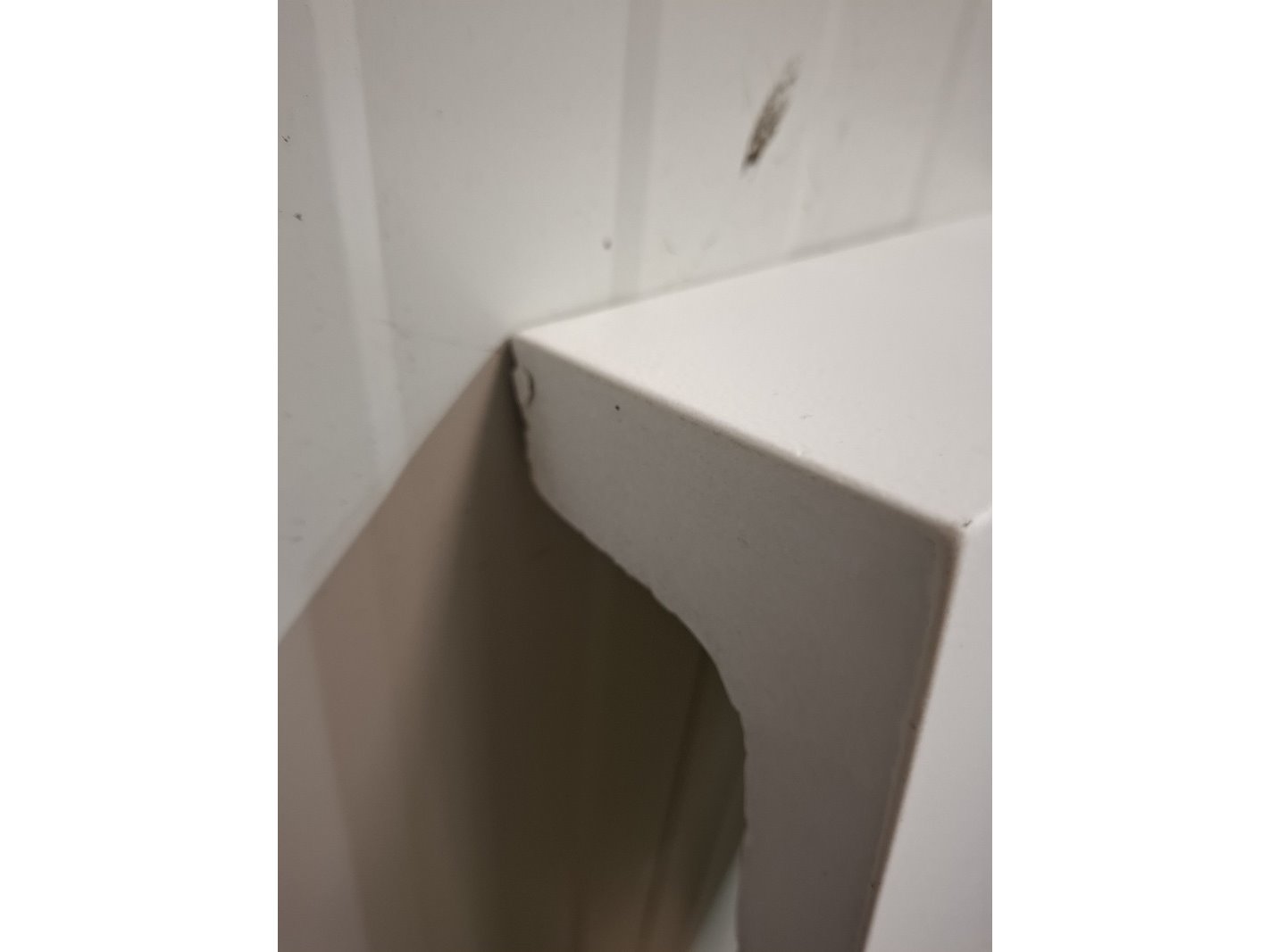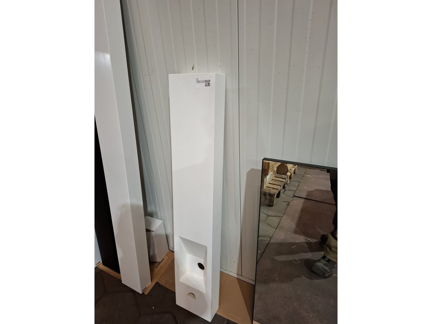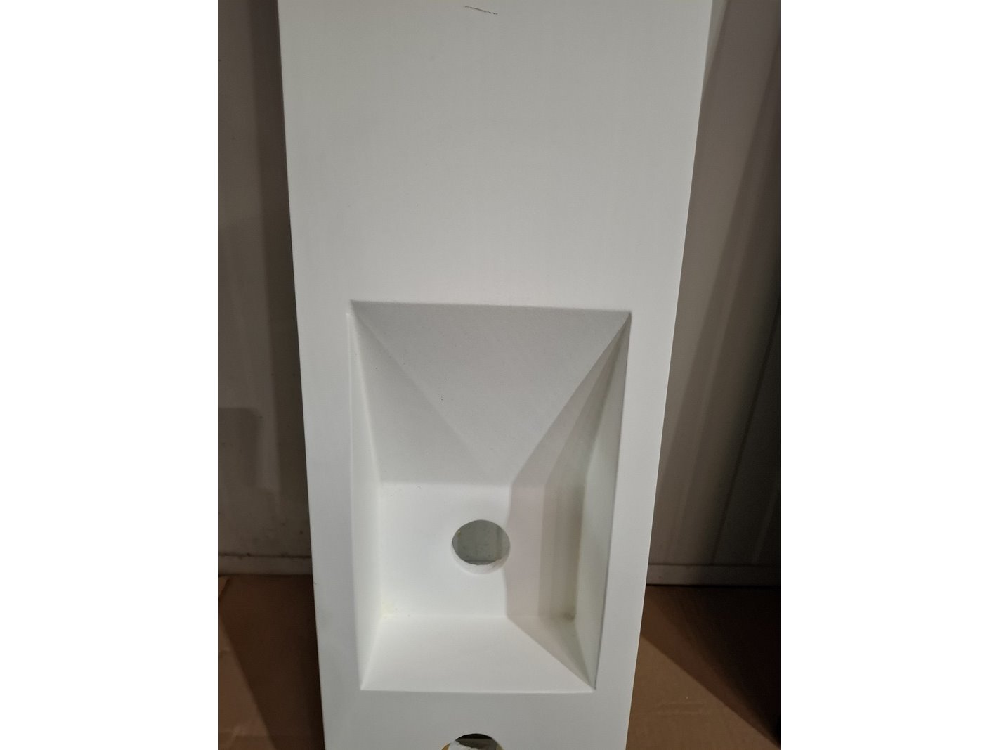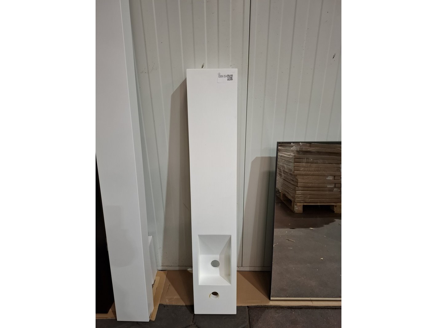 Product: Fontein Kleur: mat wit Materiaal: solid surface Afmeting: 110x20x9 Specificaties: met bak links. B-keuze