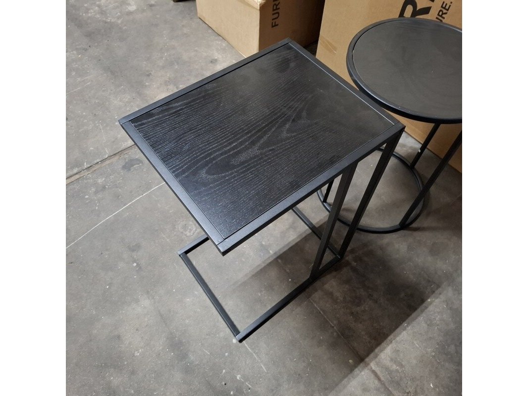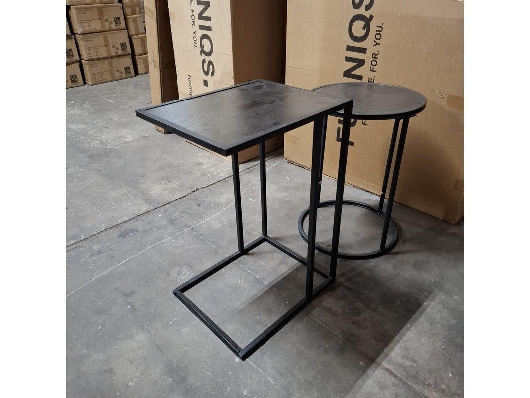 Merk: Furniqs Product: Bijzettafel Materiaal: Metaal / hout Conditie: gebruikt Specificaties: 1x hoogte ca. 55 cm, 1x hoogte ca. 63 cm Showroommodel