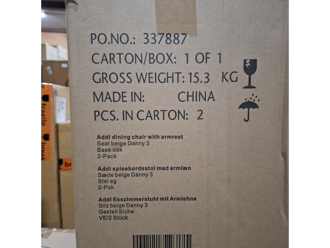 Merk: Furniqs Product: Eetkamerstoel met armleuning Kleur: Seat beige Danny 3 Conditie: Nieuw Specificaties: Nieuw in doos