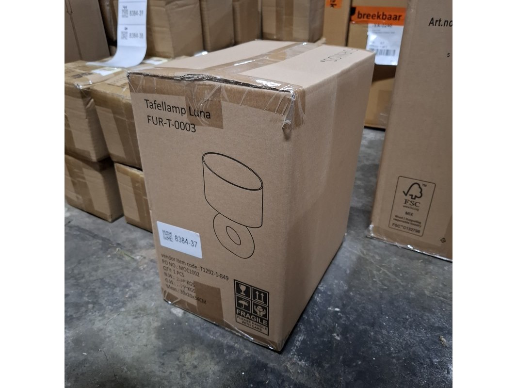 Merk: Furniqs Product: Tafellamp Conditie: Nieuw Specificaties: Serienummer: FUR-T-0003 Nieuw in doos Exclusief lamp(en) LED