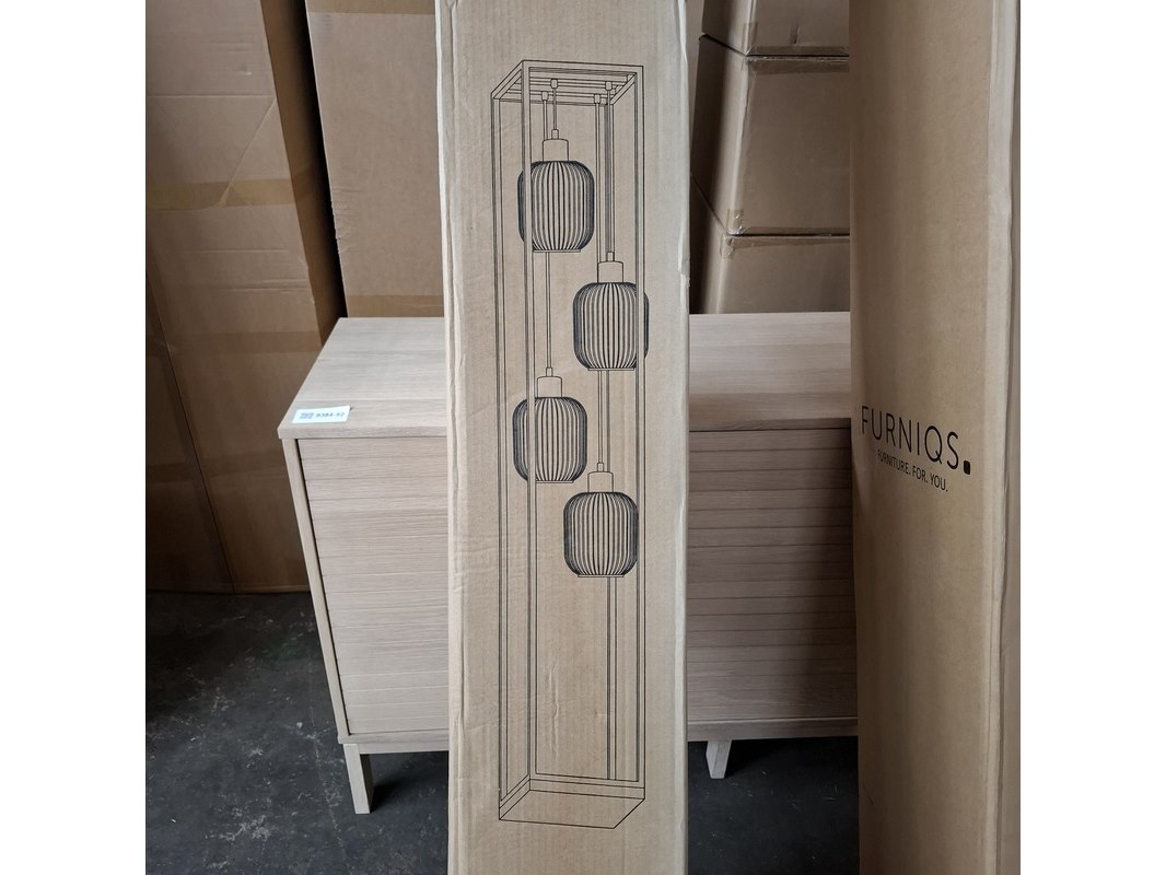 Merk: Furniqs Product: Vloerlamp Afmeting: hoogte ca. 160cm Conditie: Nieuw Specificaties: Betreft 1x lamp met serienummer: FUR-V-0001 nieuw in doos 4 glazen lampenkappen - Zwart metaal Exclusief lamp(en) LED E27