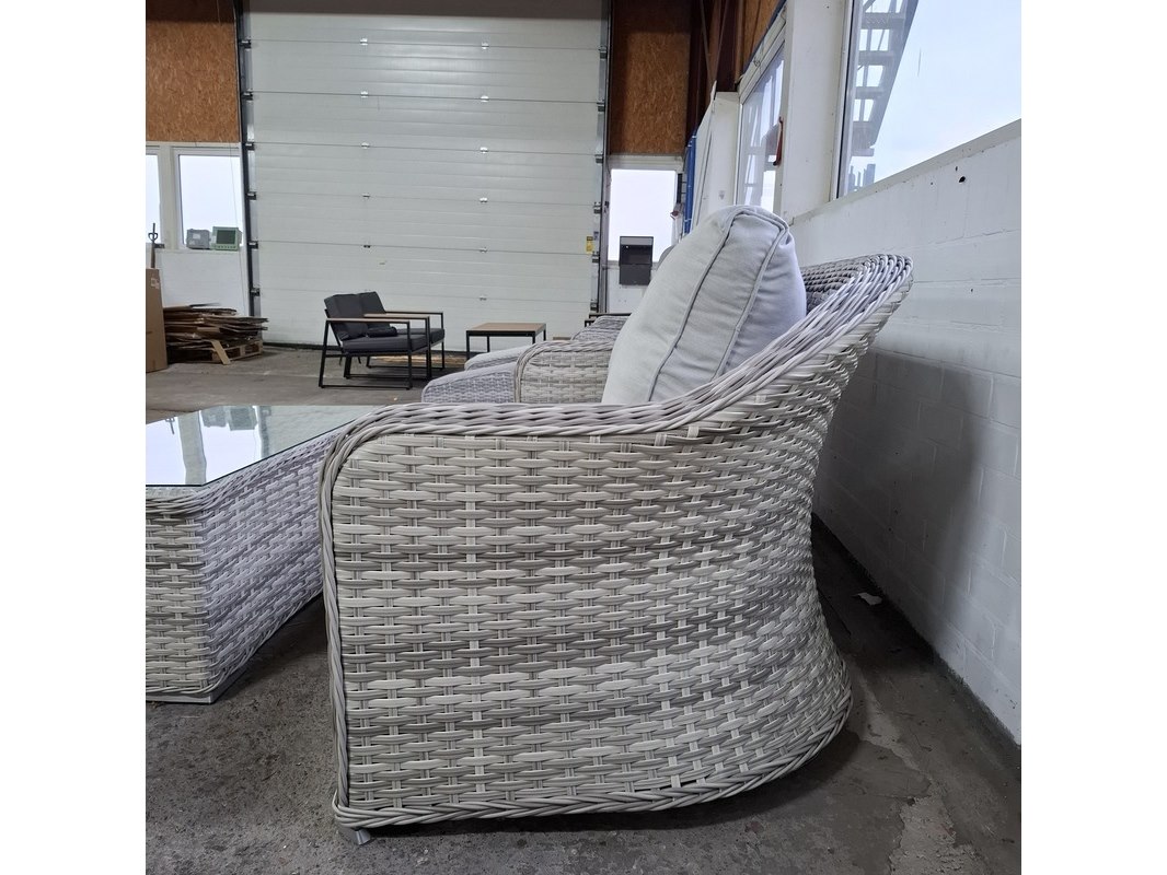 Merk: Furniqs Product: 4-delige tuinmeubelset Conditie: Nieuw Specificaties: Bestaande uit: 1x 3-zitsbank (lxbxh) ca. 203 x 95 x 83 cm, zithoogte ca. 42 cm 2x stoel zithoogte ca. 42cm 1x bijzettafel met glasplaat (lxbxh) ca. 121 x 61 x 46 cm Nieuw in 2x doos, foto's zijn een voorbeeld.