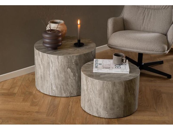 Salontafel set, actona, dice coffee table set, top paper grey marble