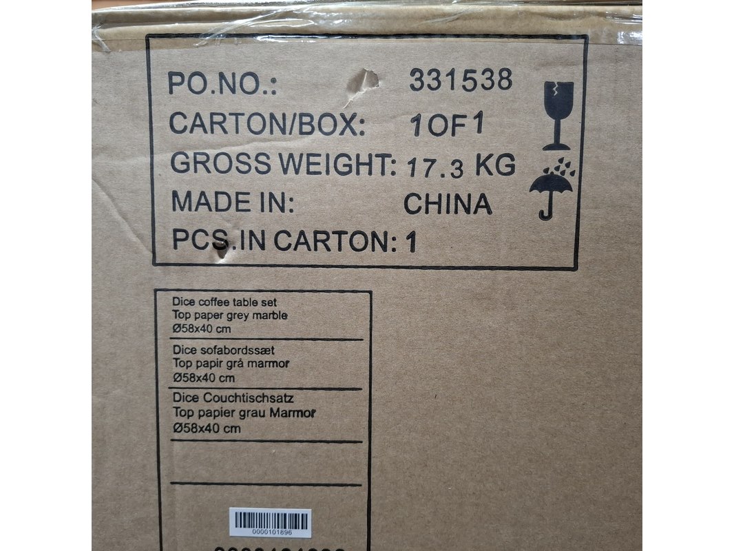 Merk: Actona Product: Salontafel set Kleur: Top paper grey marble Conditie: Nieuw Specificaties: Nieuw in 1x doos