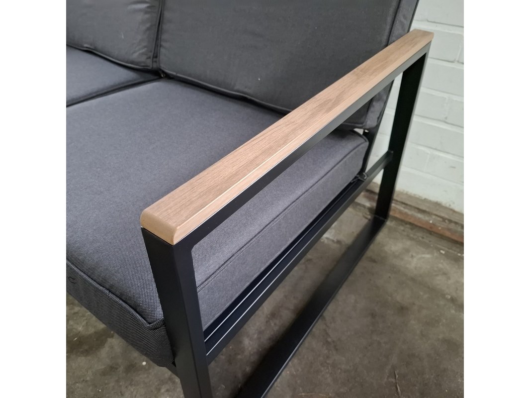 Merk: Furniqs Product: 4-delige tuinmeubelset Materiaal: Metaal / hout Conditie: Nieuw Specificaties: serienummer: DM-51410 Bestaande uit: 1x bank (lxbxh) ca. 129 x 80 x 69cm, zithoogte ca. 45 cm 1x bijzettafel (lxbxh) ca. 122 x 60 x 51 cm, 2x stoel (lxbxh) ca. 81 x 69 x 70 cm, zithoogte ca. 45 cm Regenhoes nieuw in 2x doos