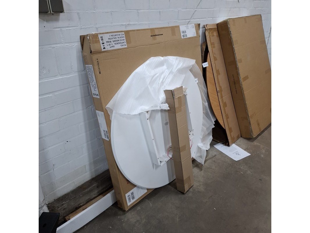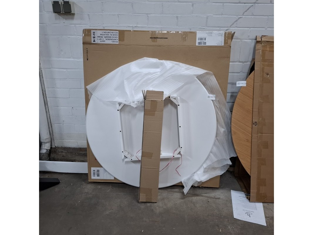 Product: Eetkamertafel Kleur: matt white Afmeting: (hxd) ca. 76 x 105 cm Conditie: Nieuw Specificaties: Uitgepakt t.b.v. foto's