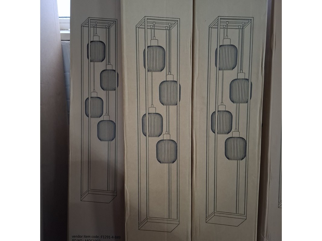 Merk: Furniqs Product: Vloerlamp Afmeting: hoogte ca. 160cm Conditie: Nieuw Specificaties: Betreft 4x lamp met serienummer: FUR-V-0001 nieuw in doos 4 glazen lampenkappen - Zwart metaal Exclusief lamp(en) LED