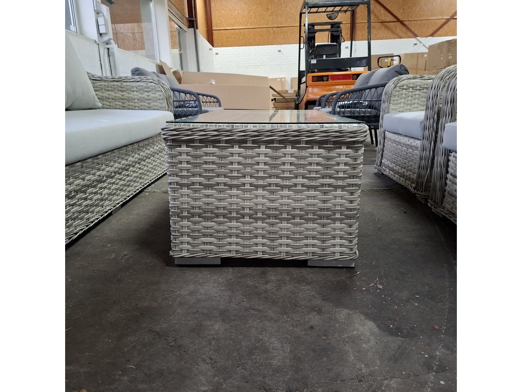 Merk: Furniqs Product: 4-delige tuinmeubelset Conditie: Nieuw Specificaties: Bestaande uit: 1x 3-zitsbank (lxbxh) ca. 203 x 95 x 83 cm, zithoogte ca. 42 cm 2x stoel zithoogte ca. 42cm 1x bijzettafel met glasplaat (lxbxh) ca. 121 x 61 x 46 cm Nieuw in 2x doos, foto's zijn een voorbeeld.