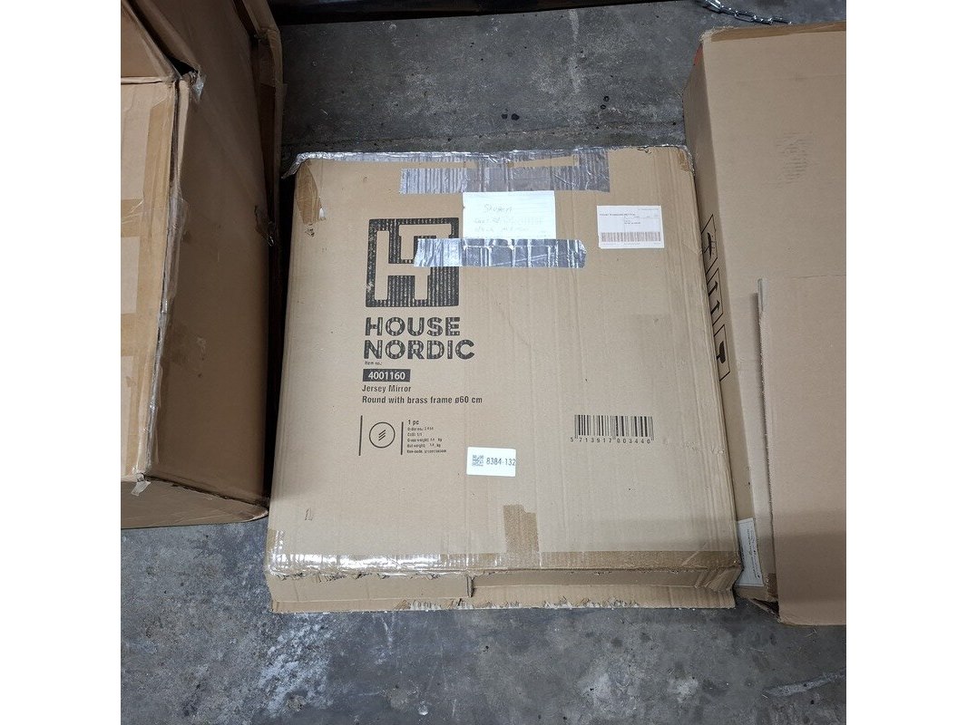 Merk: House Nordic Product: Spiegel Materiaal: Brass frame Afmeting: Ø 60 cm Conditie: Nieuw Specificaties: Nieuw in doos