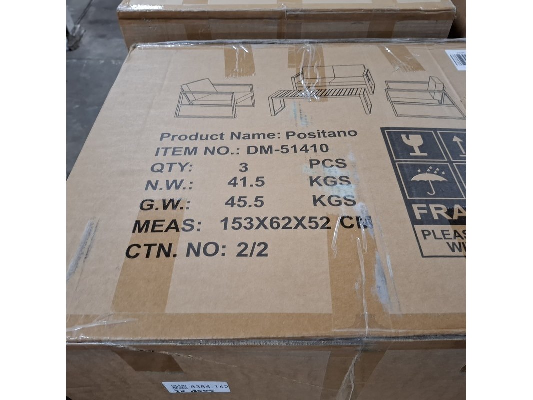 Merk: Furniqs Product: 4-delige tuinmeubelset Materiaal: Metaal / hout Conditie: Nieuw Specificaties: serienummer: DM-51410 Bestaande uit: 1x bank (lxbxh) ca. 129 x 80 x 69cm, zithoogte ca. 45 cm 1x bijzettafel (lxbxh) ca. 122 x 60 x 51 cm, 2x stoel (lxbxh) ca. 81 x 69 x 70 cm, zithoogte ca. 45 cm Regenhoes nieuw in 2x doos