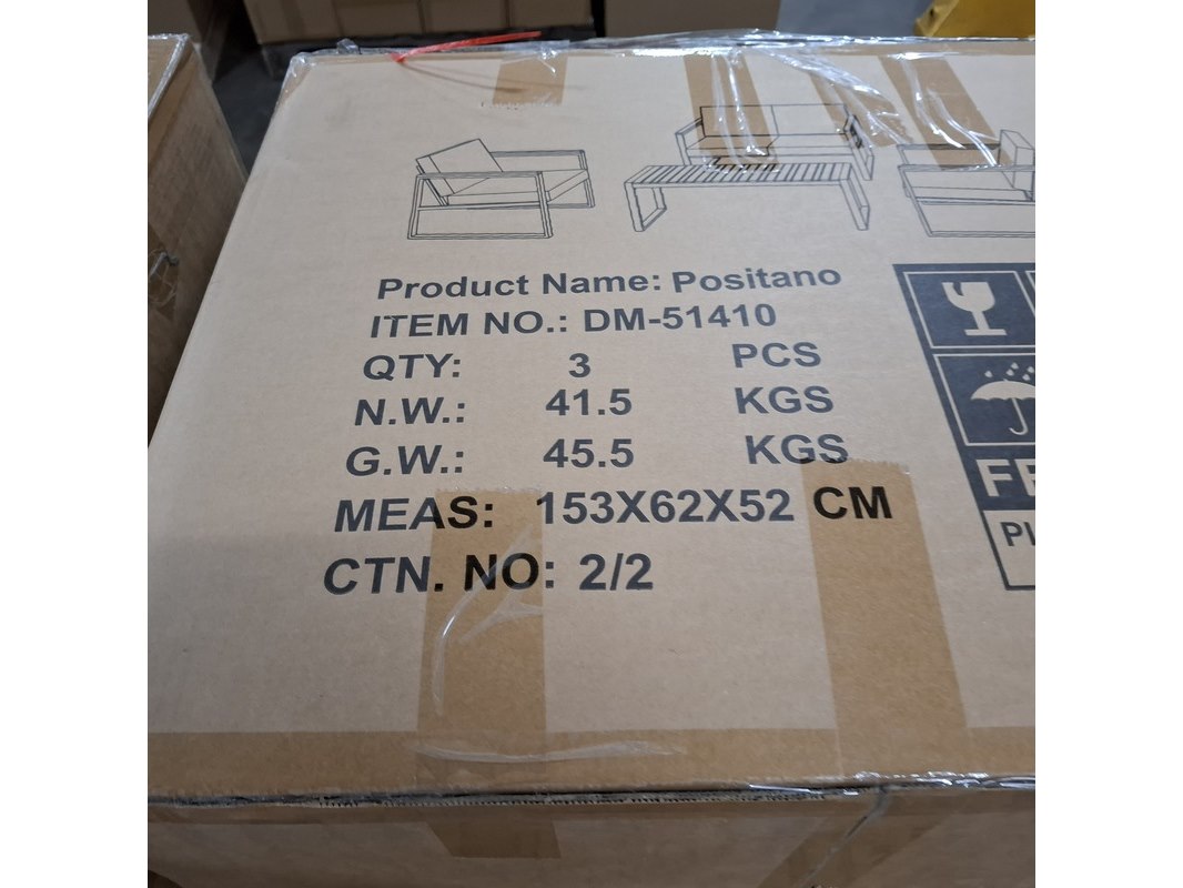 Merk: Furniqs Product: 4-delige tuinmeubelset Materiaal: Metaal / hout Conditie: Nieuw Specificaties: serienummer: DM-51410 Bestaande uit: 1x bank (lxbxh) ca. 129 x 80 x 69cm, zithoogte ca. 45 cm 1x bijzettafel (lxbxh) ca. 122 x 60 x 51 cm, 2x stoel (lxbxh) ca. 81 x 69 x 70 cm, zithoogte ca. 45 cm Regenhoes nieuw in 2x doos