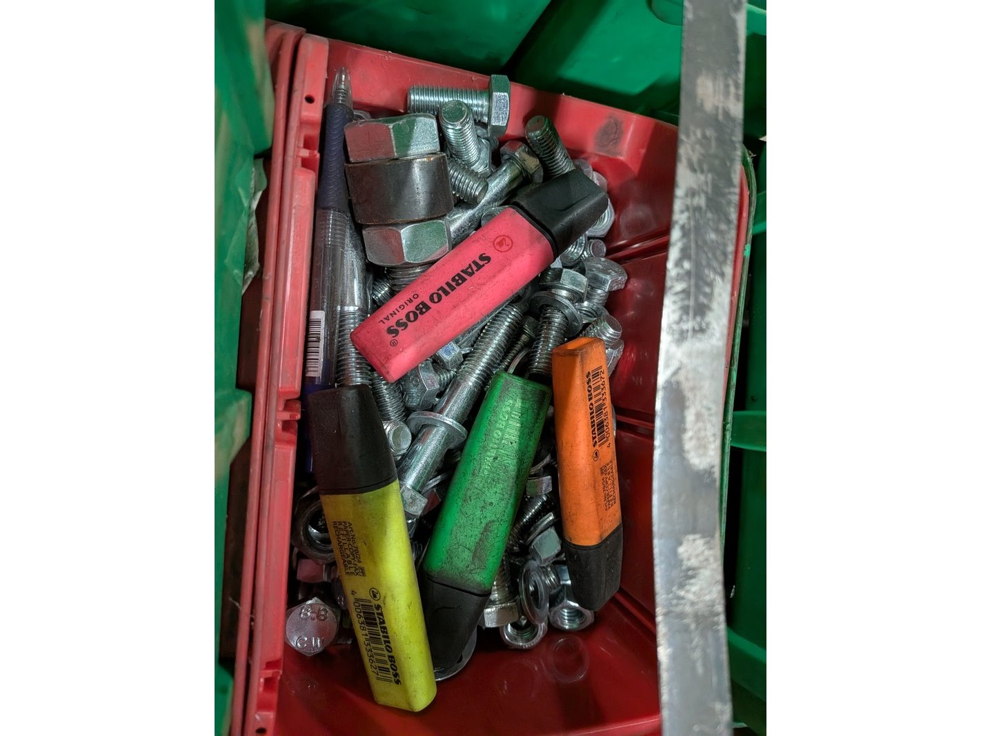 Product: Partij ijzerwaren Specificaties: o.a. bouten, moeren, ringen, lagers, etc.