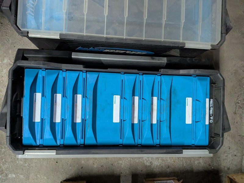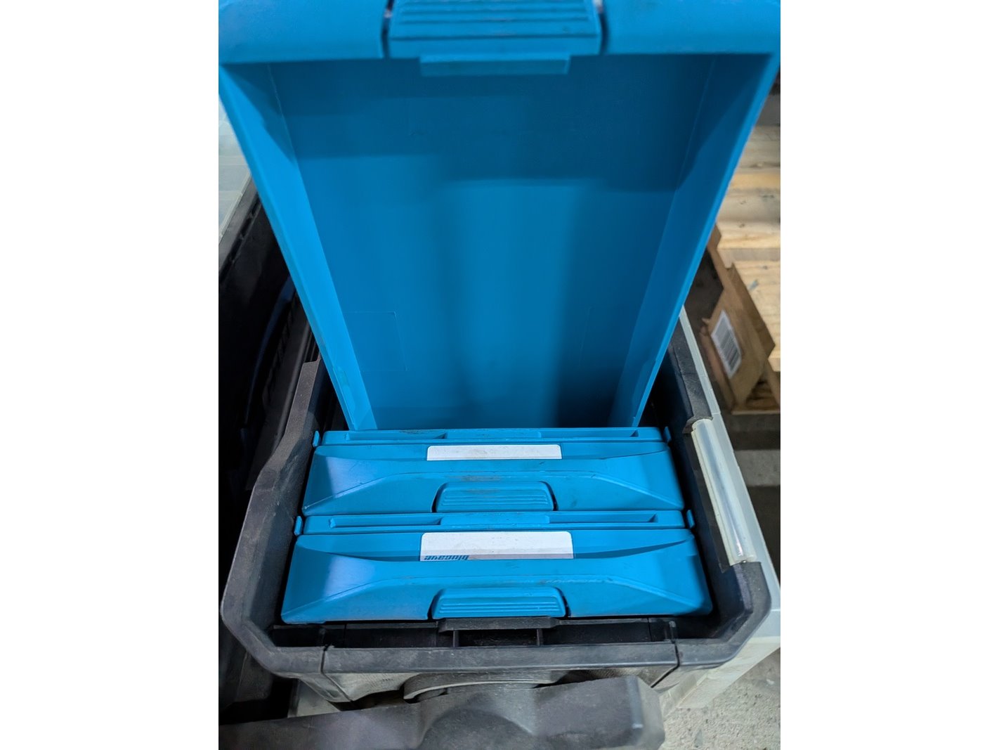 Product: Modulair opbergsysteem Kleur: Blucave Specificaties: bestaande uit 3x koffers met lades en een opbergrek