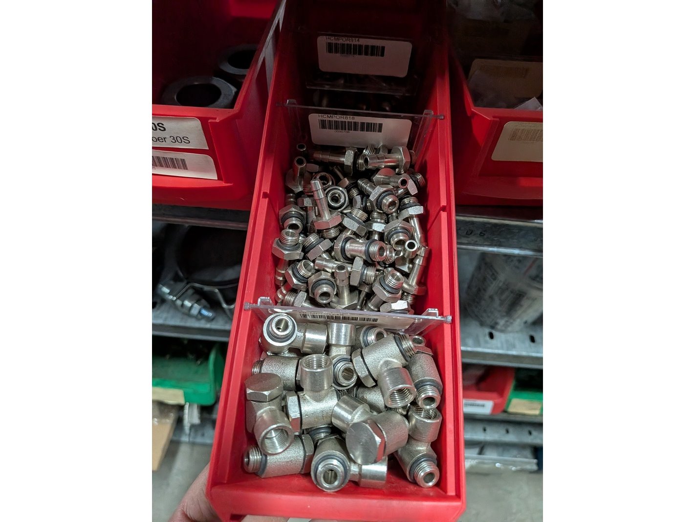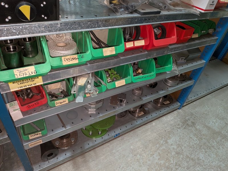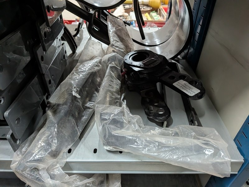 Product: Partij bemester onderdelen en toebehoren Specificaties: o.a. trekveer voor schoffelhouders, bouten, moeren, verlichting, ringen, spanschroeven, klepscharnieren, etc. (in 6,25mtr stelling)