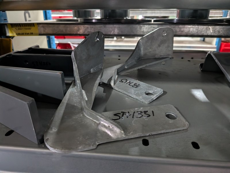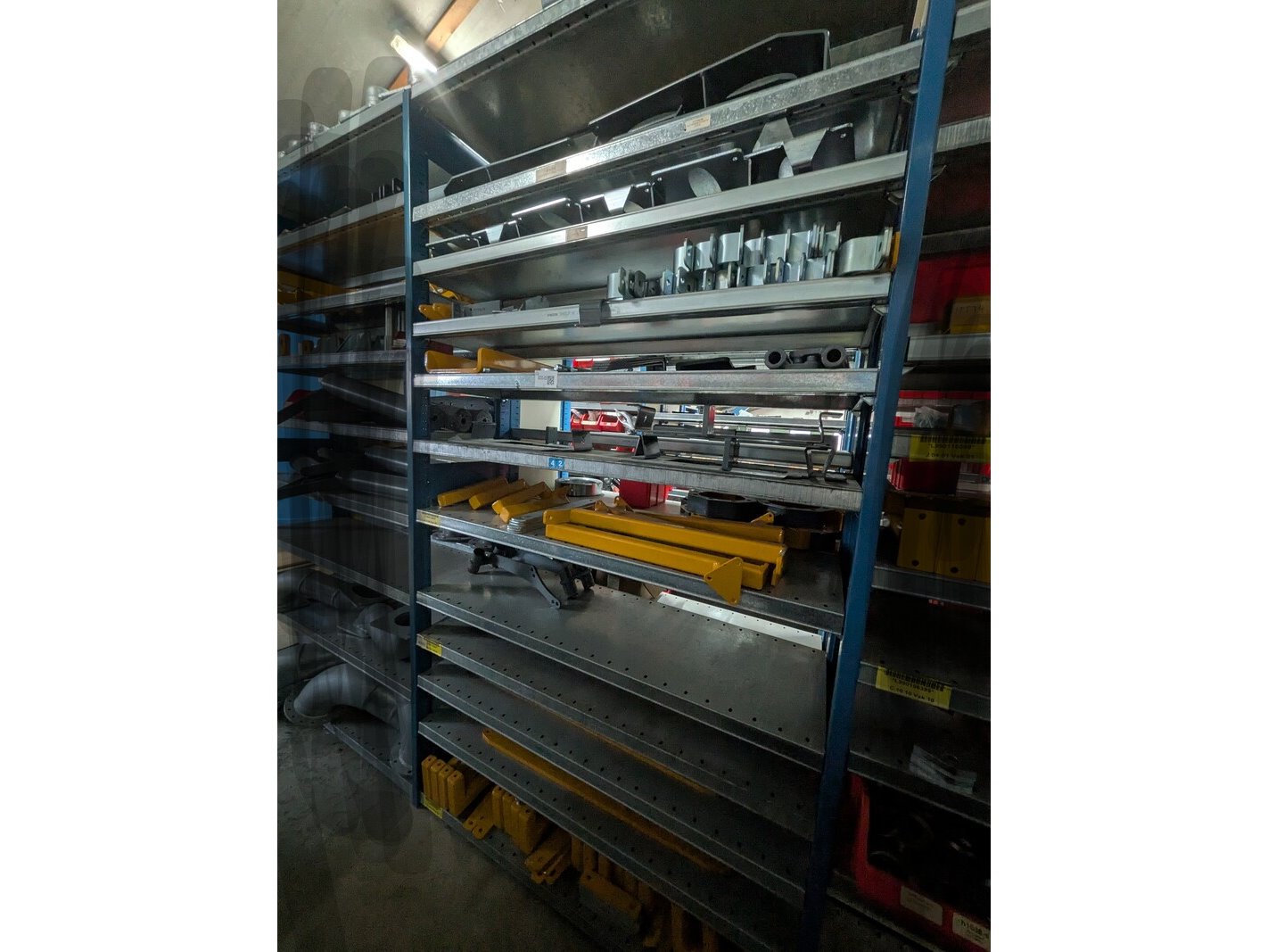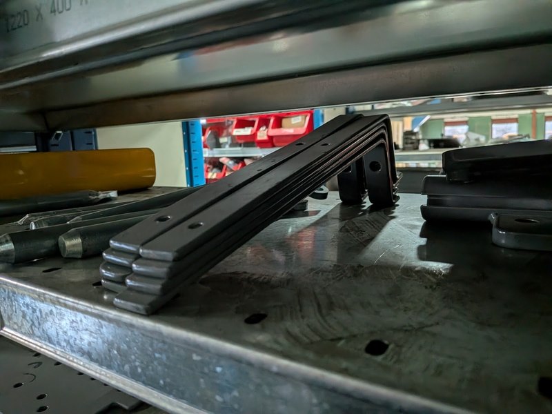 Product: Partij bemester onderdelen en toebehoren Specificaties: o.a. houderplaten, U beugels, pennen, bevestigingsplaten, etc. (in 1,25mtr stelling)