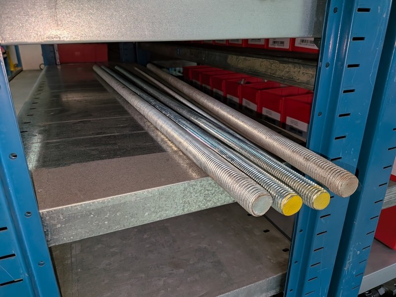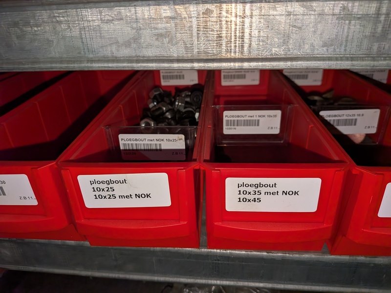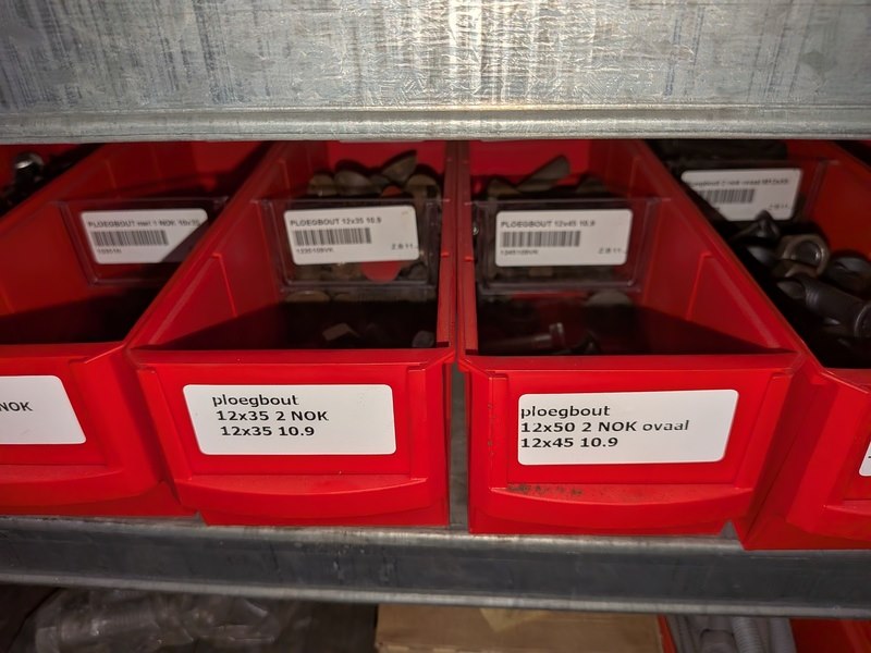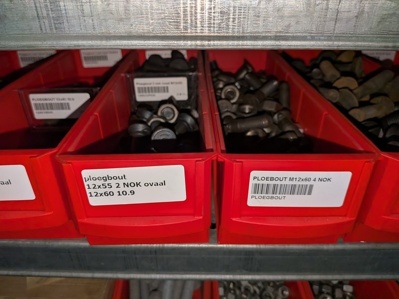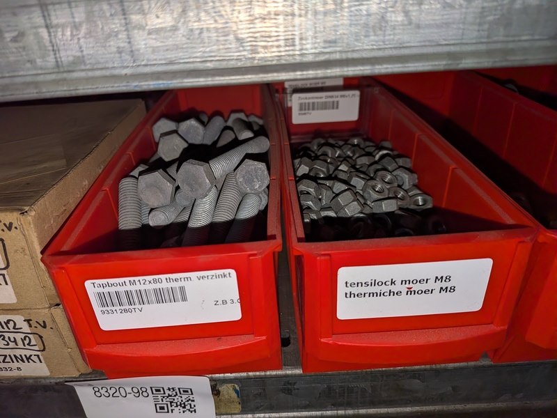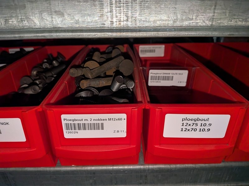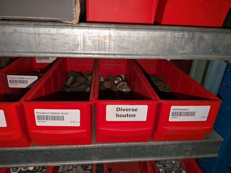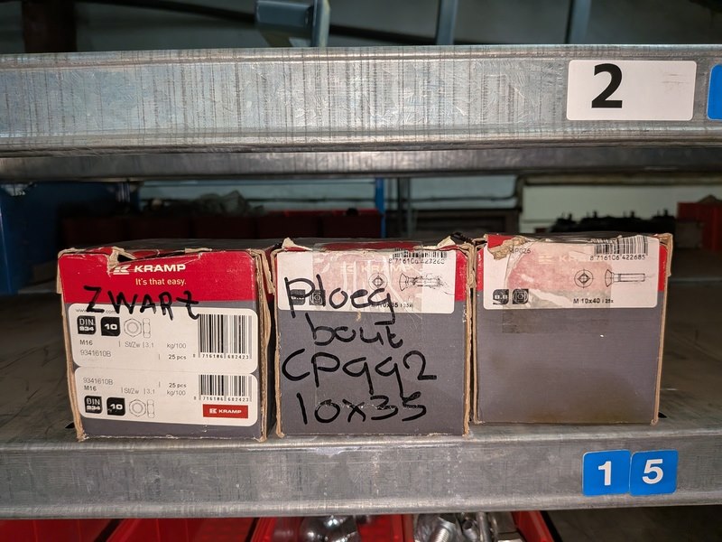 Product: Diverse ijzerwaren o.a. bouten Specificaties: o.a. ploegbouten, tapbouten, moeren, ringen, draadeinden, etc. (in 1,25mtr stelling)