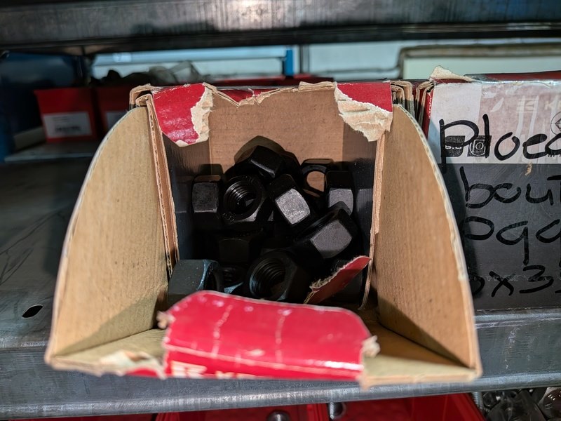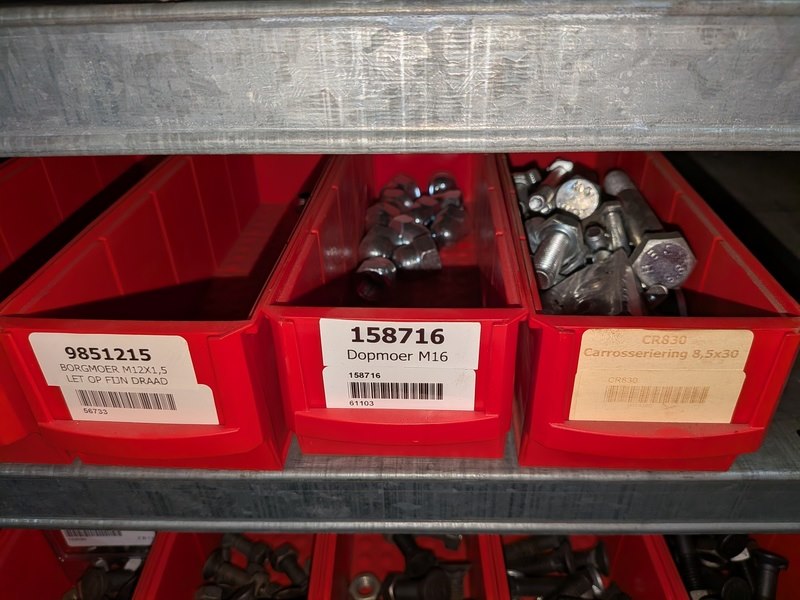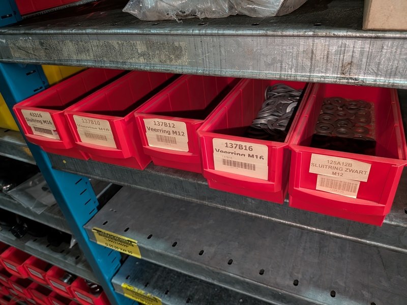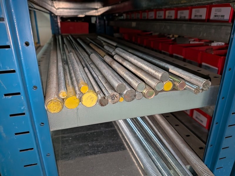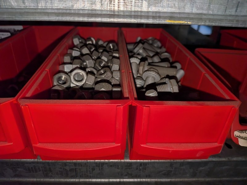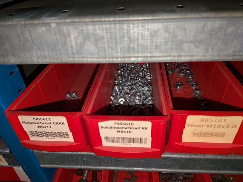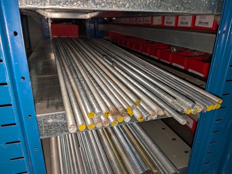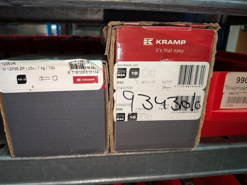 Product: Diverse ijzerwaren o.a. bouten Specificaties: o.a. ploegbouten, tapbouten, moeren, ringen, draadeinden, etc. (in 1,25mtr stelling)