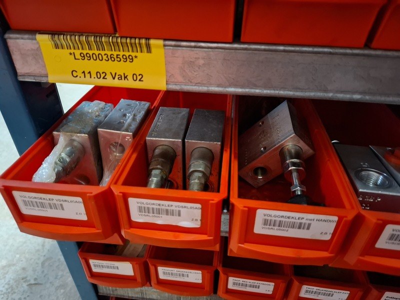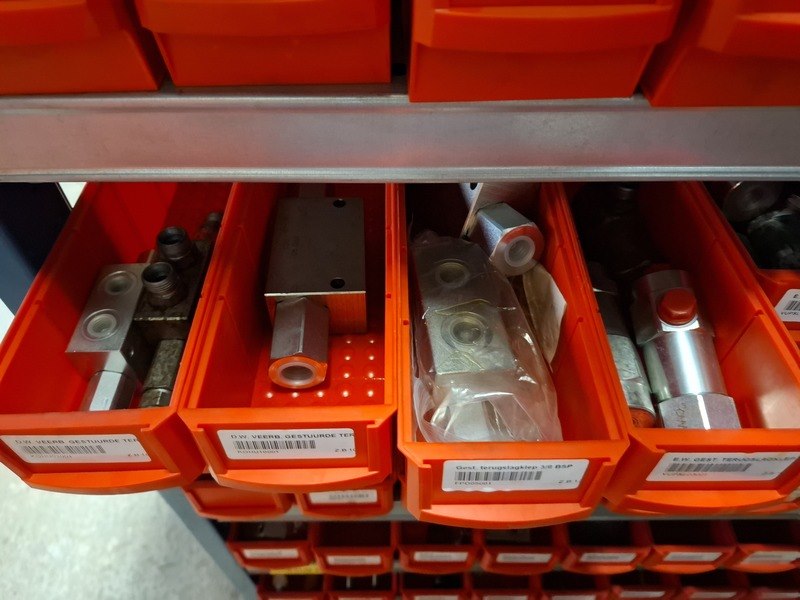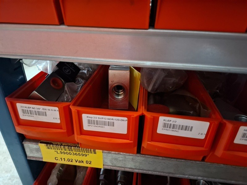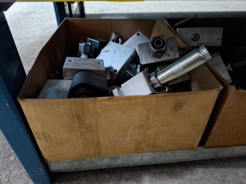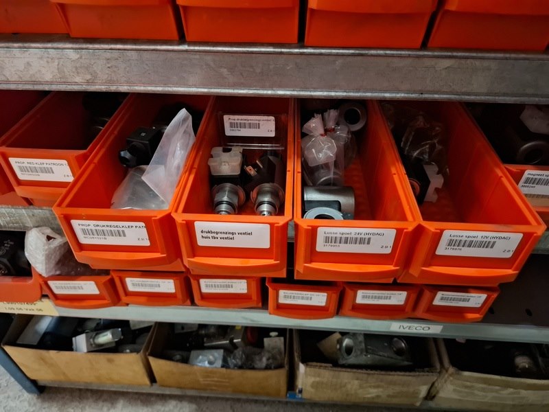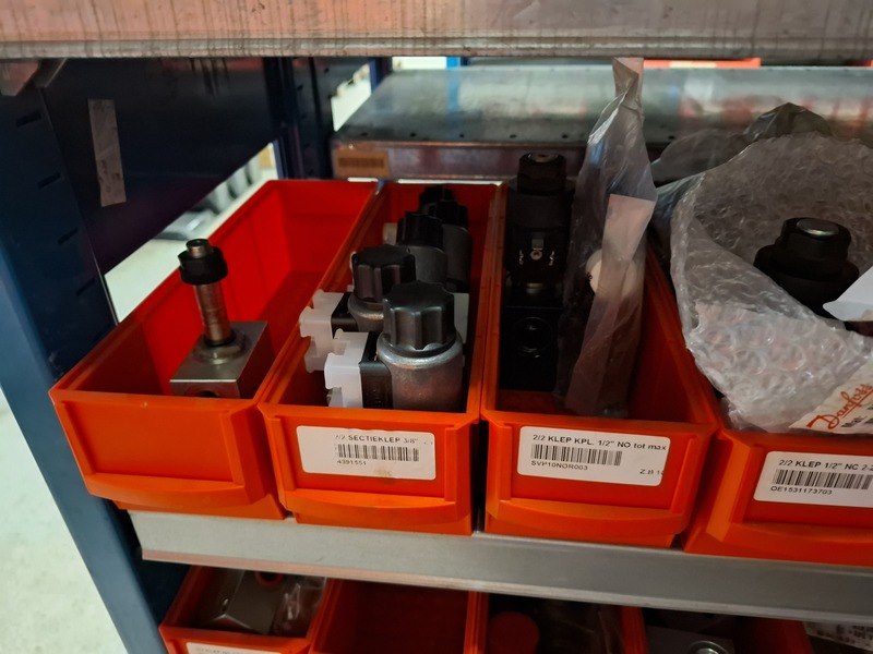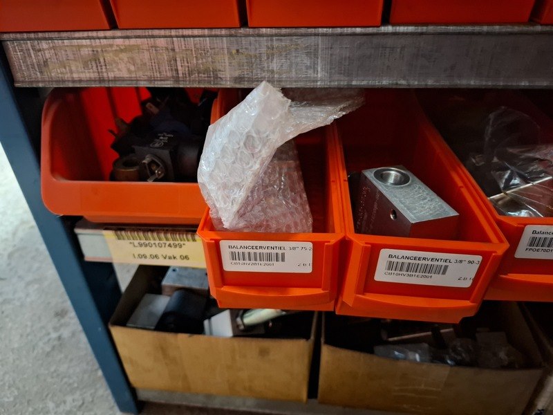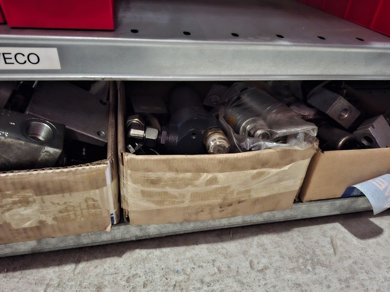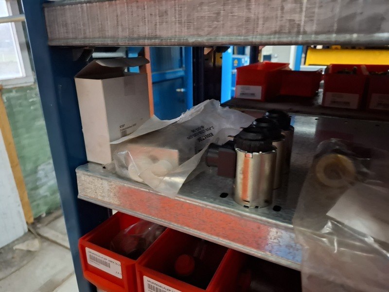 Product: Diverse ijzerwaren o.a. plunjers Specificaties: o.a. terugslagkleppen, bouten, moeren, elektrisch hydraulische kleppen, etc. (in 1,25mtr stelling)
