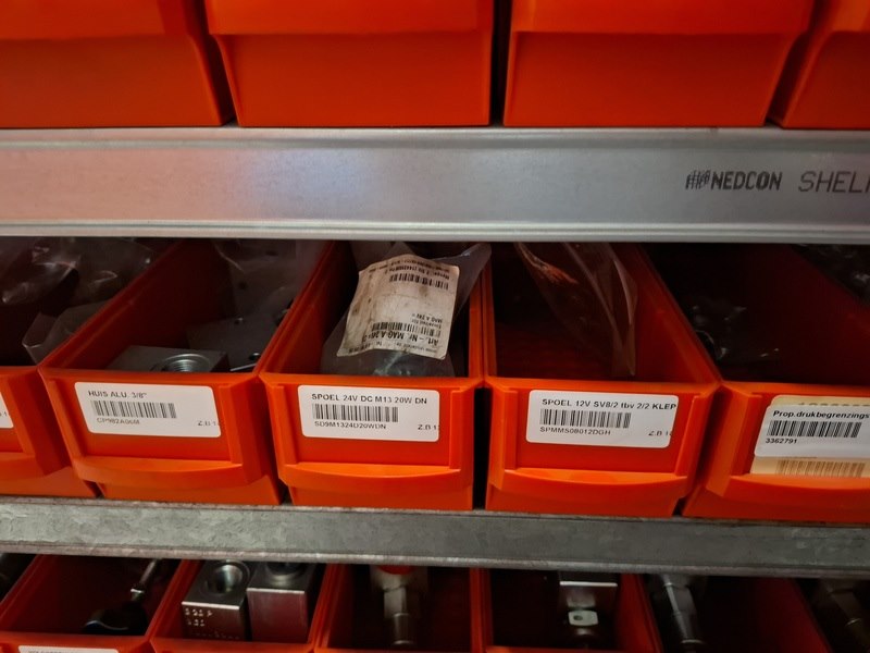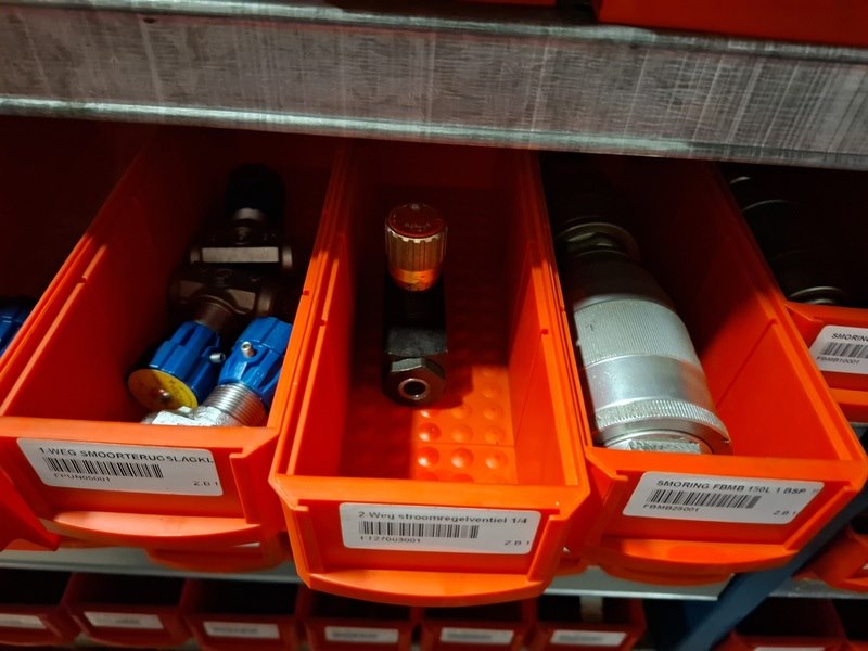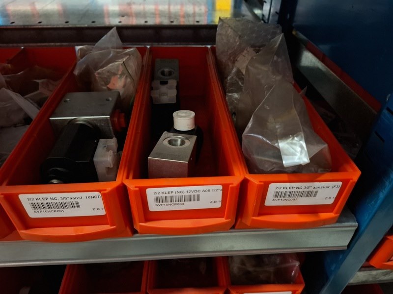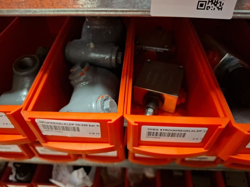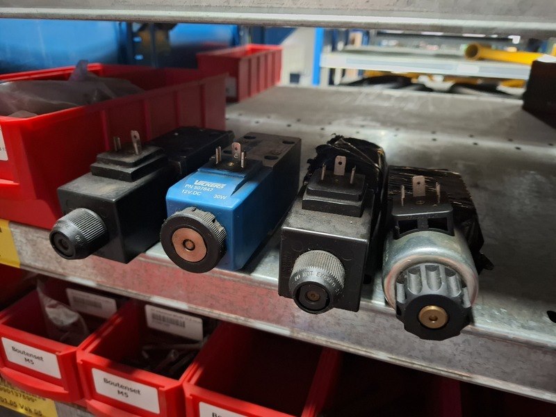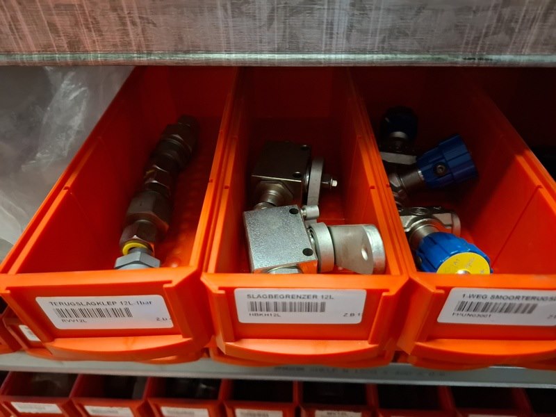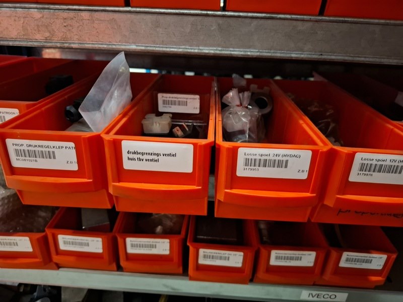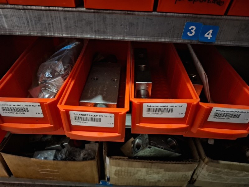 Product: Diverse ijzerwaren o.a. plunjers Specificaties: o.a. terugslagkleppen, bouten, moeren, elektrisch hydraulische kleppen, etc. (in 1,25mtr stelling)
