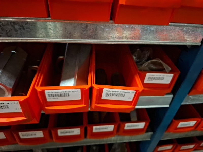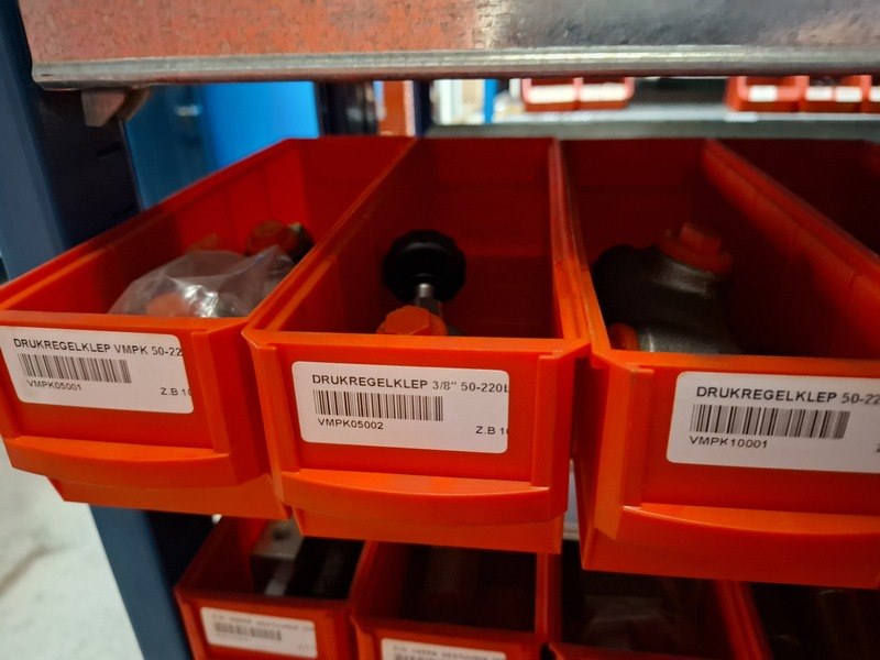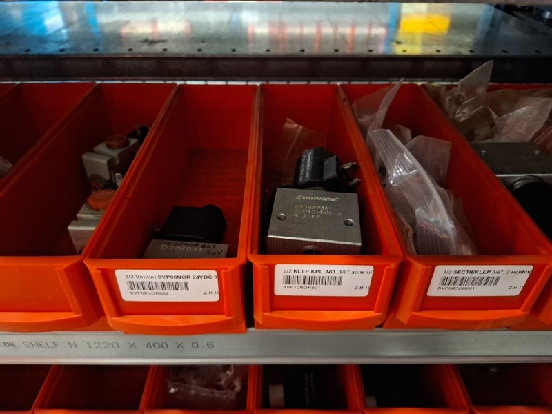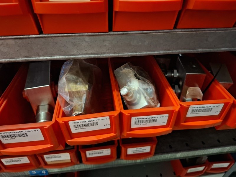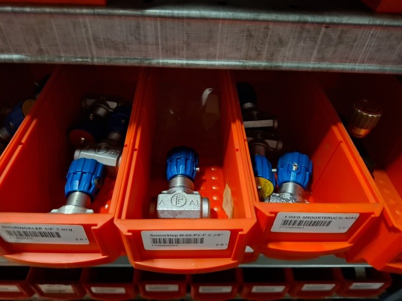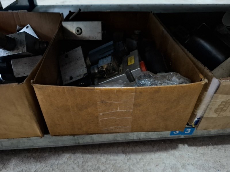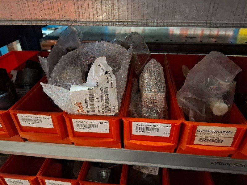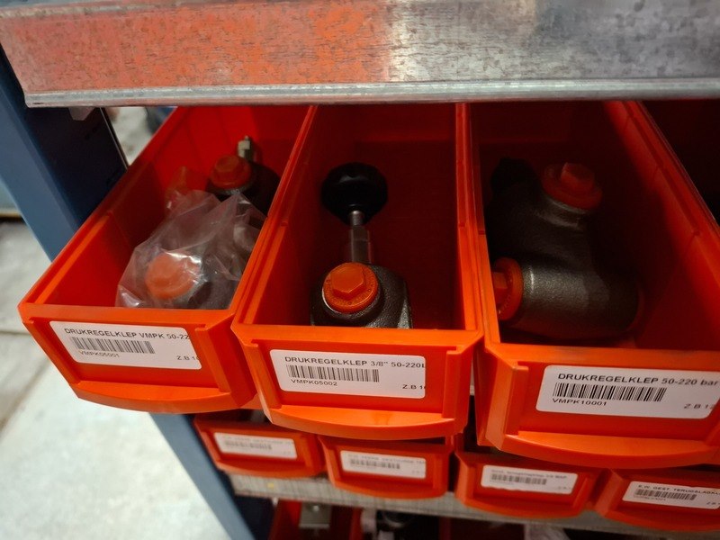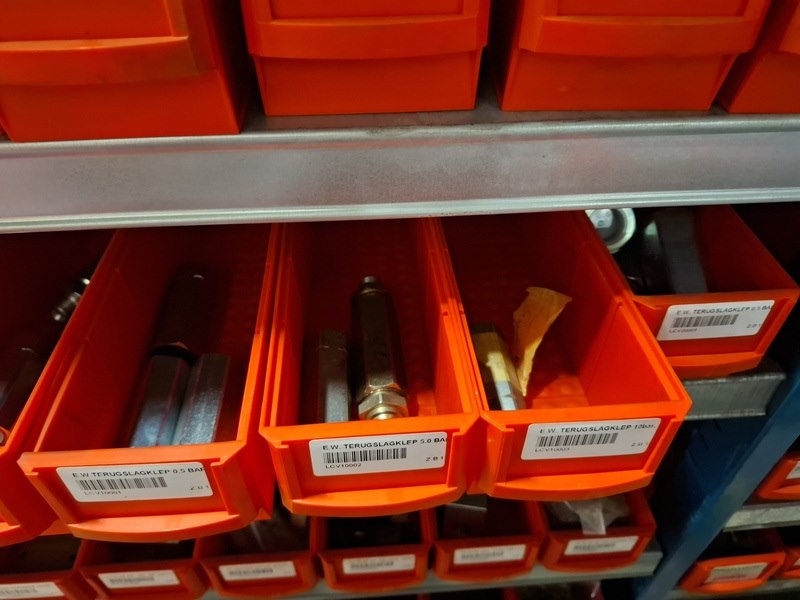 Product: Diverse ijzerwaren o.a. plunjers Specificaties: o.a. terugslagkleppen, bouten, moeren, elektrisch hydraulische kleppen, etc. (in 1,25mtr stelling)