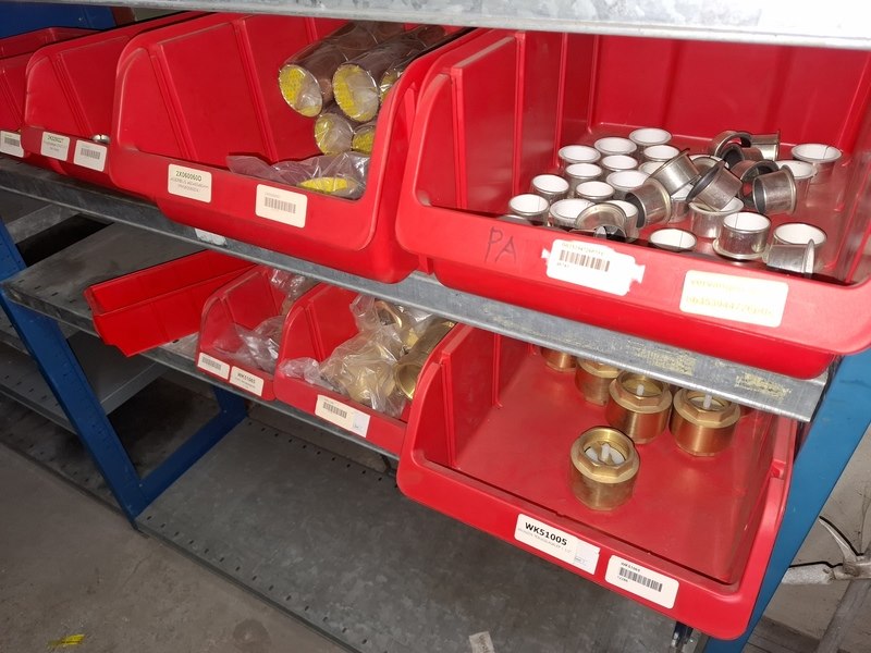 Product: Partij o.a. lagerbussen Specificaties: o.a. lagerbussen, topstang pennen, terugslagkleppen, etc. (in 1,25mtr stelling)