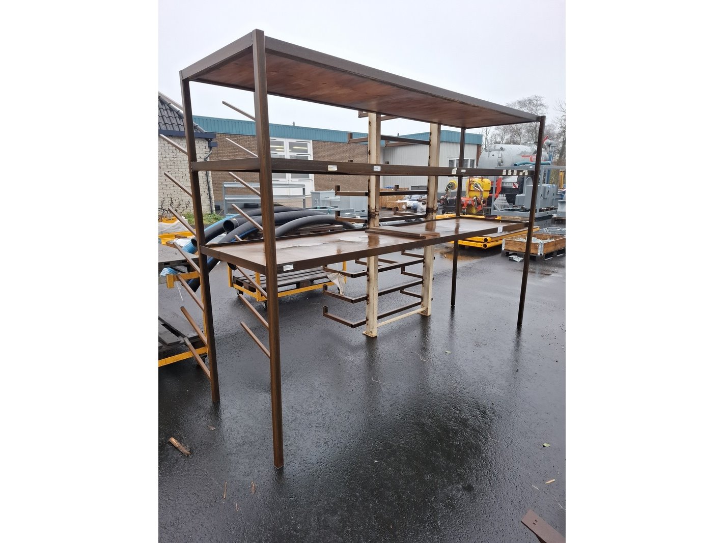 Product: diverse bedrijfsinventaris Specificaties: o.a. 2x magazijnwagen; magazijnstelling afm. ca 300x140x210cm, diverse slang