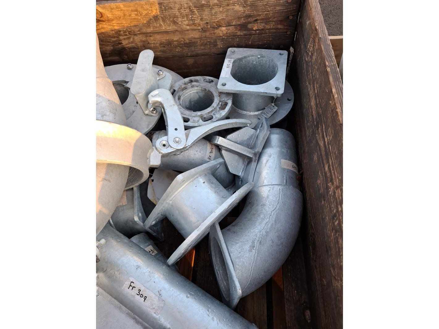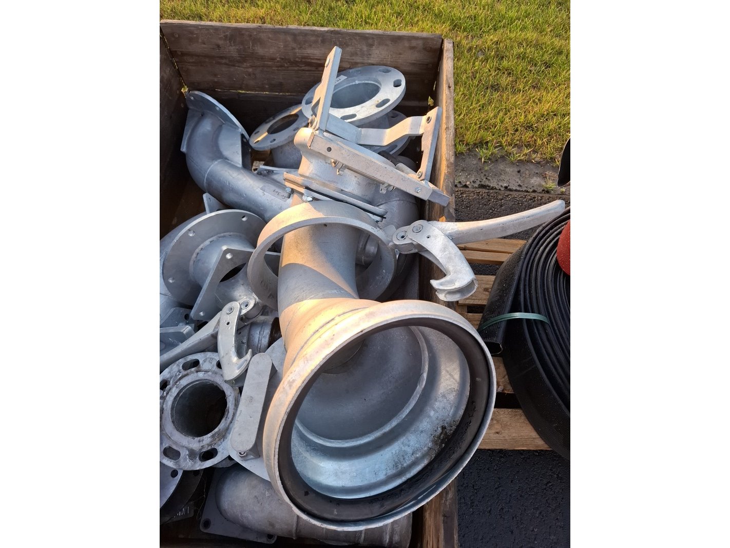 Product: Pallet met o.a. koppelingen 8 duims Specificaties: o.a. afsluiters, flensen met bochten, verloop flenzen, etc.