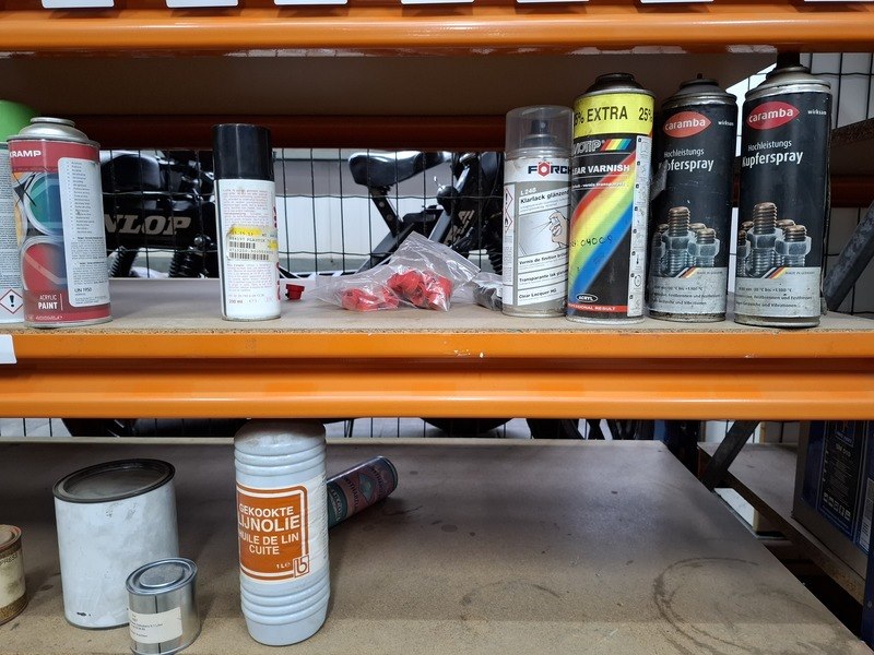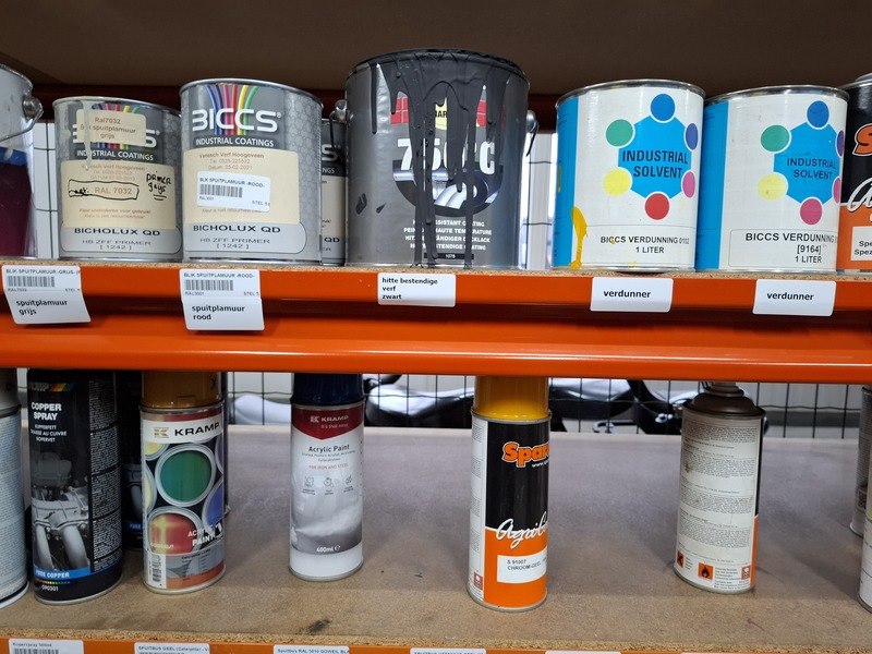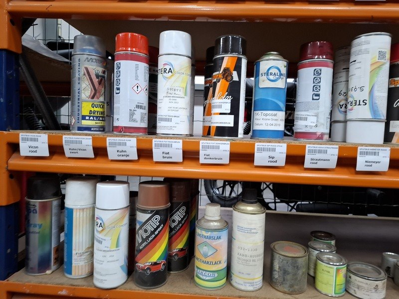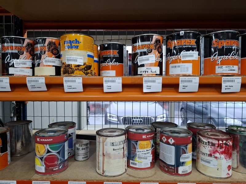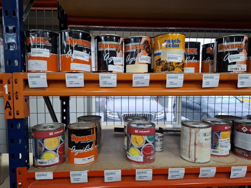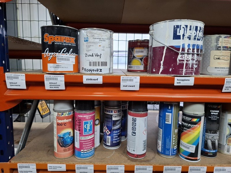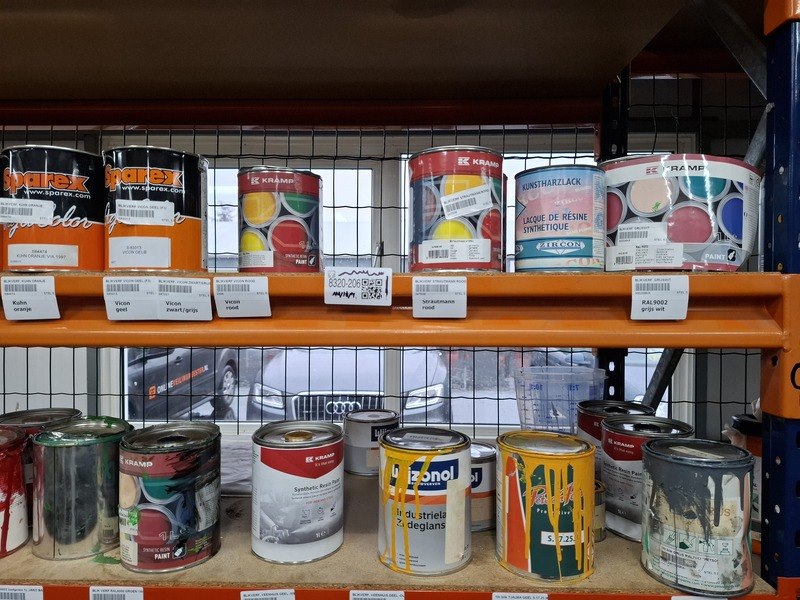 Merk: o.a. Sparex Product: Partij verf Specificaties: diverse kleuren, spuitbussen en bussen verf