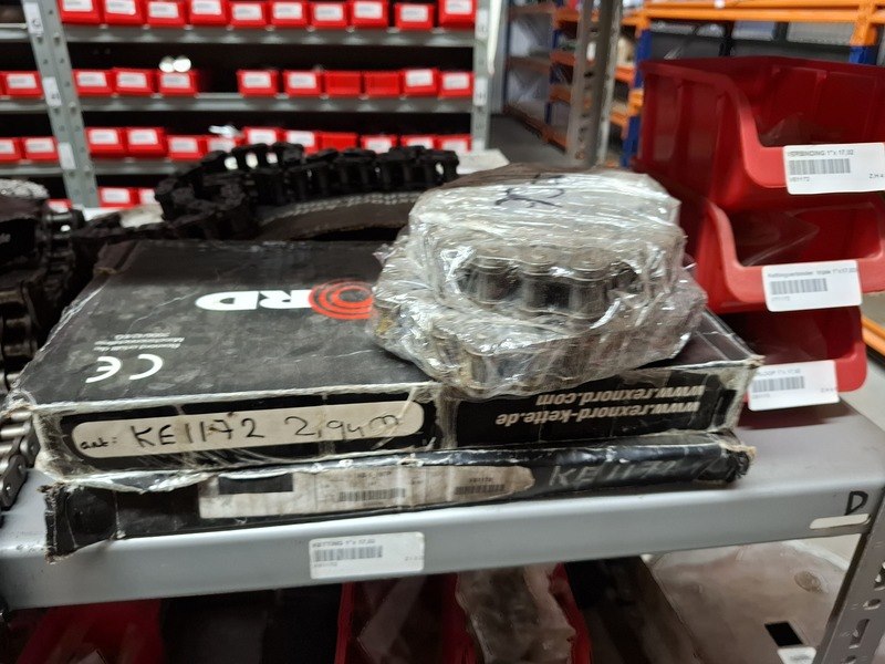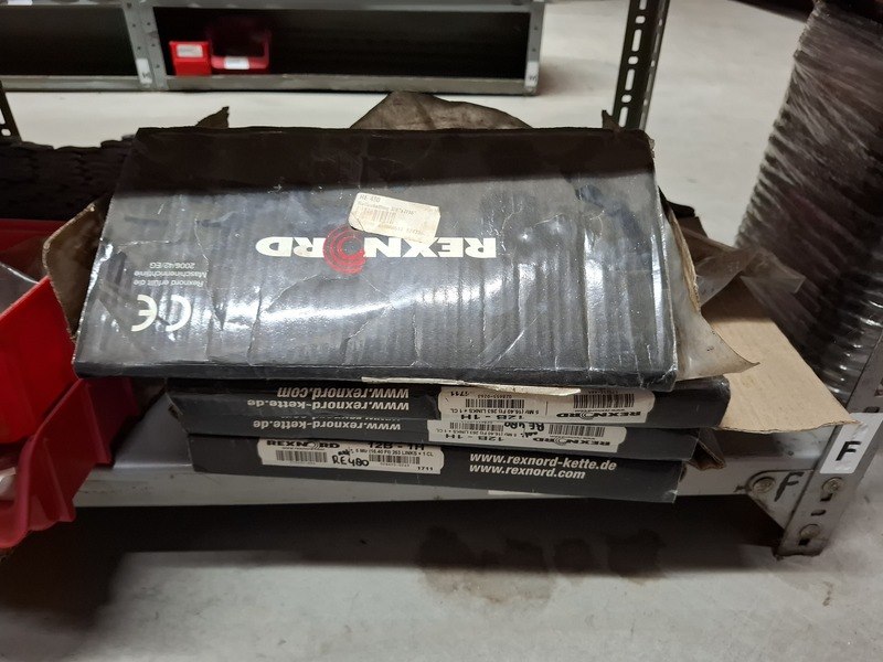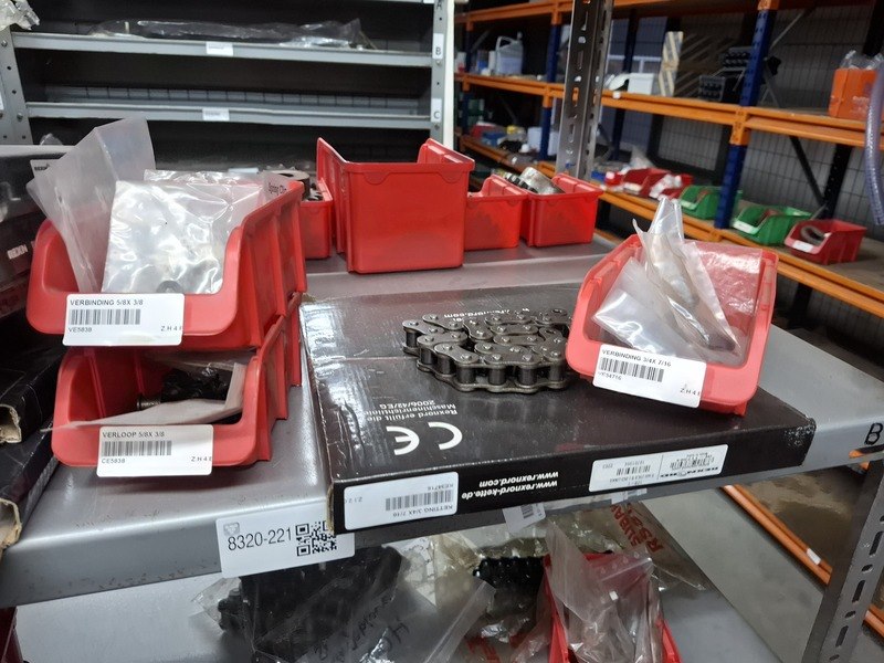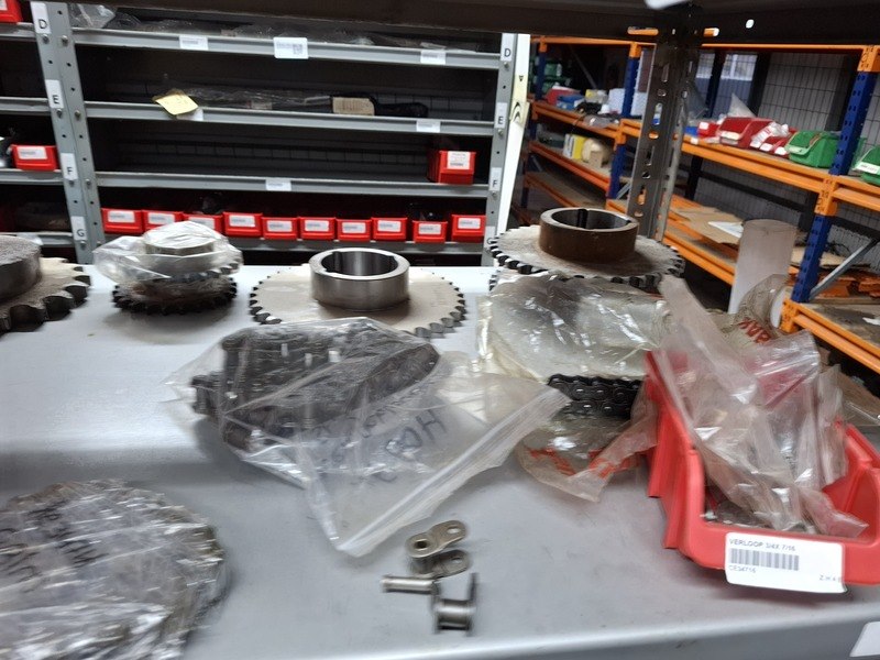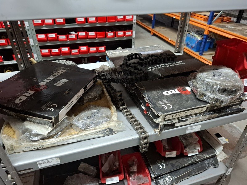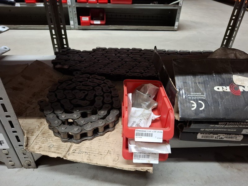 Product: Partij ketting en kettingwielen Specificaties: o.a. verbindingen, etc. (1mtr stelling)