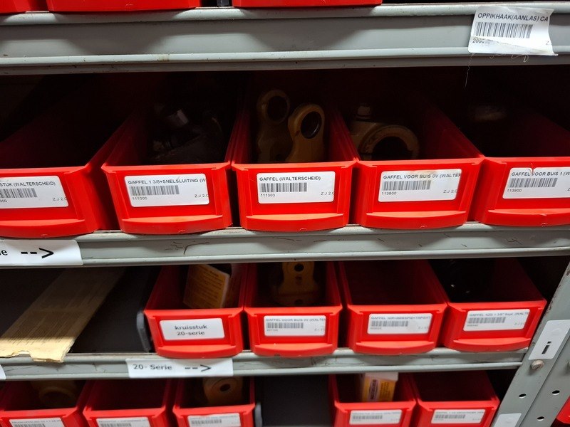 Merk: Walterscheid Product: Diverse aftakas onderdelen Specificaties: o.a. hefarmen, koppelingen, kogelvangsteunen, etc. (1mtr stelling)