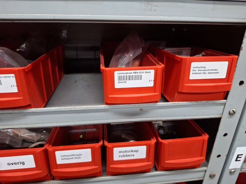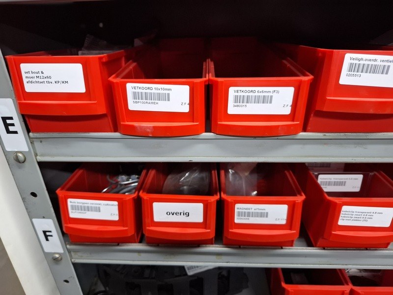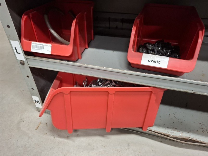 Product: Diverse machine onderdelen Specificaties: o.a. cultivator beitels, massa slot, peil glazen, smeerbussen, etc. (1mtr stelling)