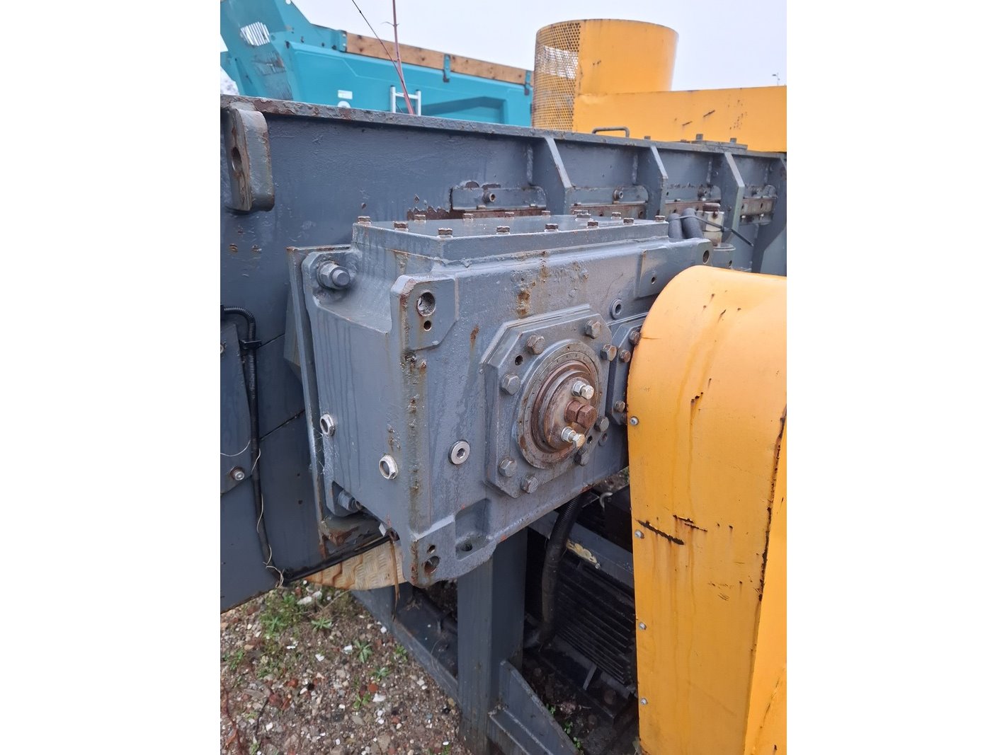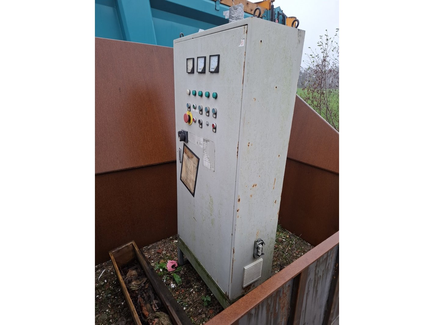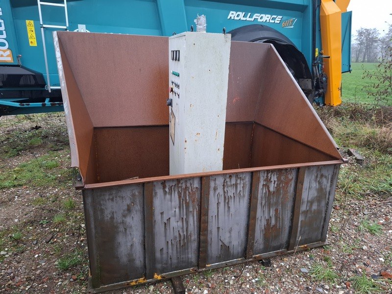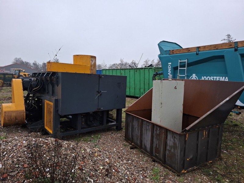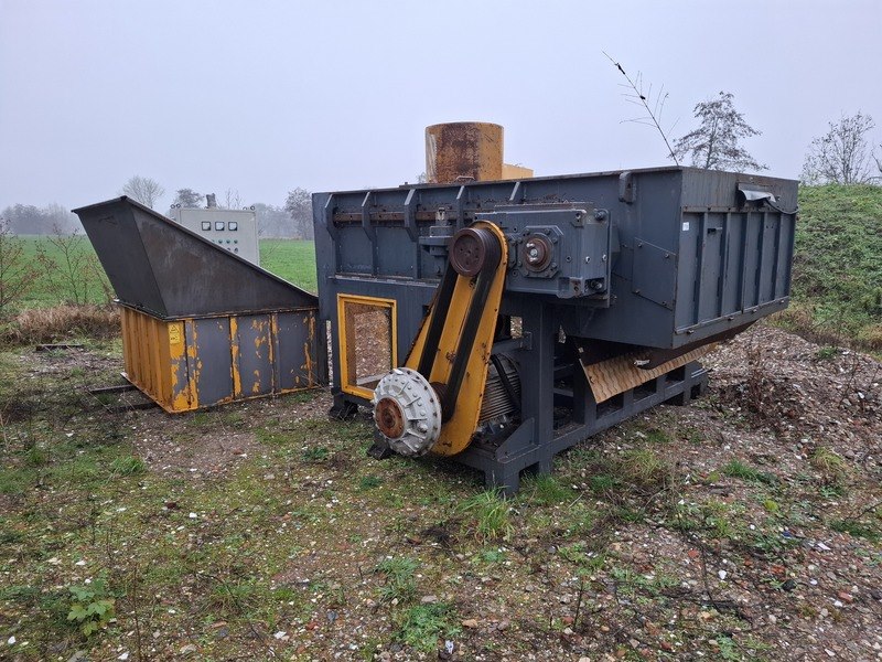 Product: Schredder Afmeting: afm. ca 430x330x250cm Specificaties: met besturingskast, elektromotoren, afm. bak ca 250x200x190cm verdere staat en werking onbekend